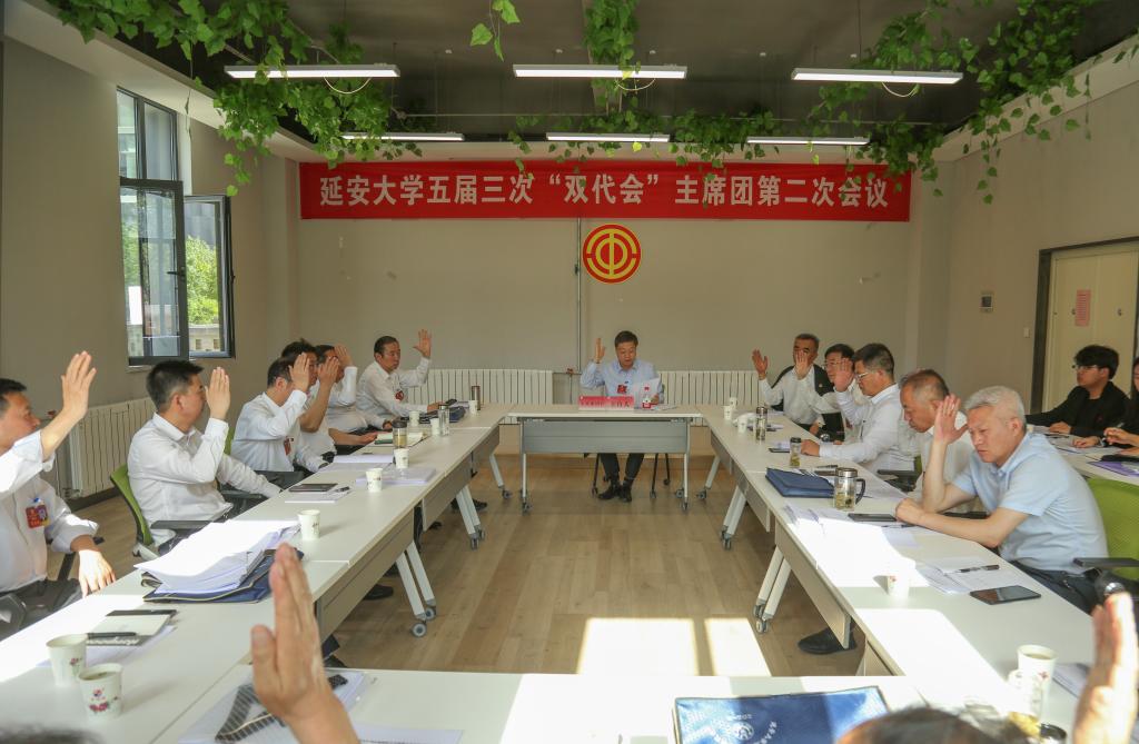 本网讯 5月31日下午,米兰五届三次“双代会”主席团第二次会议在新城校区学生活动中心215会议室举行,全体主席团成员、各代表团团长参加了会议。会议由主席团主席、校党委书记张金锁主持。