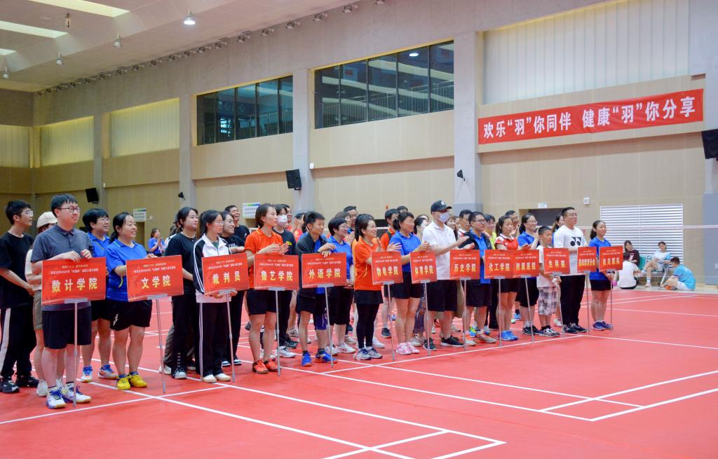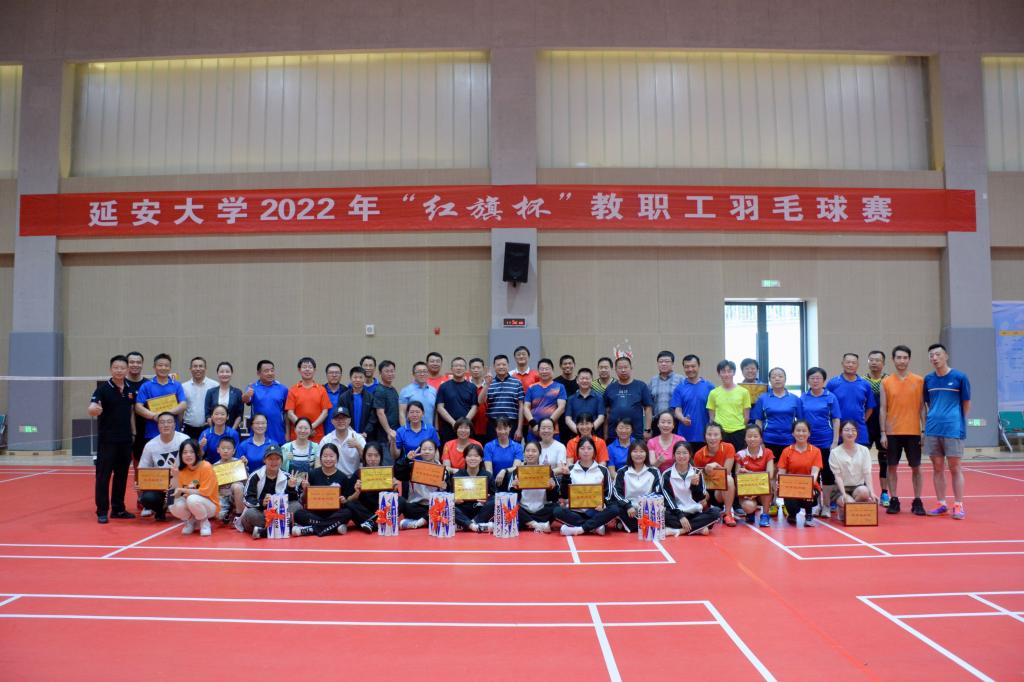 本网讯 为积极迎接中国共产党第二十次全国代表大会胜利召开,展现全校教职工的活力姿态,促进教职工之间的交流,6月10-12日,由校工会主办,体育学院、场馆中心、新校区建设办公室协办,教职工羽毛球协会承办的2022年“红旗杯”教职工羽毛球比赛在米兰新城校区体育馆举行。校工会主席杨曦东,延安市羽毛球协会主席侯香峰,体育学院、新校区建设办公室、教职工羽毛球协会等单位负责同志及来自学校各分工会代表队100多名运动员参加了开幕式,杨曦东主席致开幕词。开幕式由校工会副主席史晓霞主持。