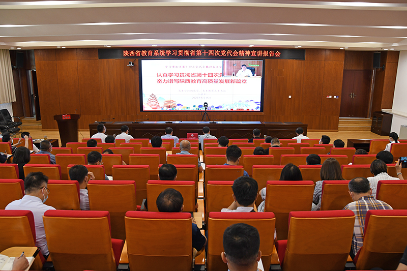 报告会上,王建利以《认真学习贯彻省第十四次党代会精神奋力谱写陕西教育高质量发展新篇章》为题,从会议基本情况、全省过去五年的工作成效、今后五年的奋斗目标、总体要求、主要任务等方面,对省第十四次党代会精神进行了全面系统的宣讲和深入浅出的解读;聚焦党代会提出的“教育强省建设取得新进步”和“办好人民满意的教育”的更高要求和主要任务,结合教育系统实际,从全面加强党的建设、全面落实立德树人根本任务、全面守牢守好意识形态主阵地、全面推动各级各类教育质量提升、全面防范化解安全稳定风险等五个方面,提出了贯彻落实要求。报告政治站位高、主题鲜明、思想深刻、内容翔实,对于全省教育系统深刻领会、准确把握党代会精神实质具有重要的指导意义。