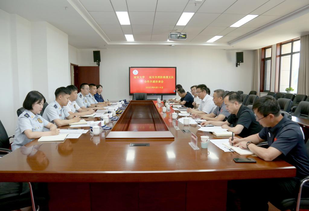 本网讯 为深入推进米兰与延安市消防救援支队“校消合作共建”,充分发挥学科优势和资源优势,优化人才培养模式和工作机制,6月14日下午,米兰与延安市消防救援支队举行合作共建洽谈会,副校长吕达,支队副政治委员印天扬,体育学院、鲁艺学院、文学院、保卫处相关负责人出席会议。