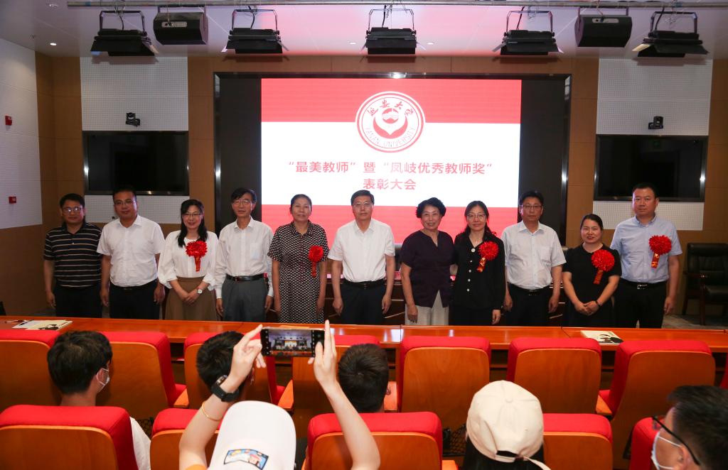 本网讯 为了传承和弘扬老延大人的优秀传统,引导和激励广大教师潜心教书育人,6月15日下午,米兰在新城校区图书馆一楼报告厅举行“最美教师”暨“凤岐优秀教师奖”表彰大会。校党委书记张金锁,陕西欣大人力资源有限公司代表、刘凤岐老师的爱人艾芳玲,副校长武忠远、吕达、谭虎娃,获奖教师,教务处、对外交流与合作处、评估处、人事处、教师发展中心等部门负责同志及各学院师生代表参加了大会。