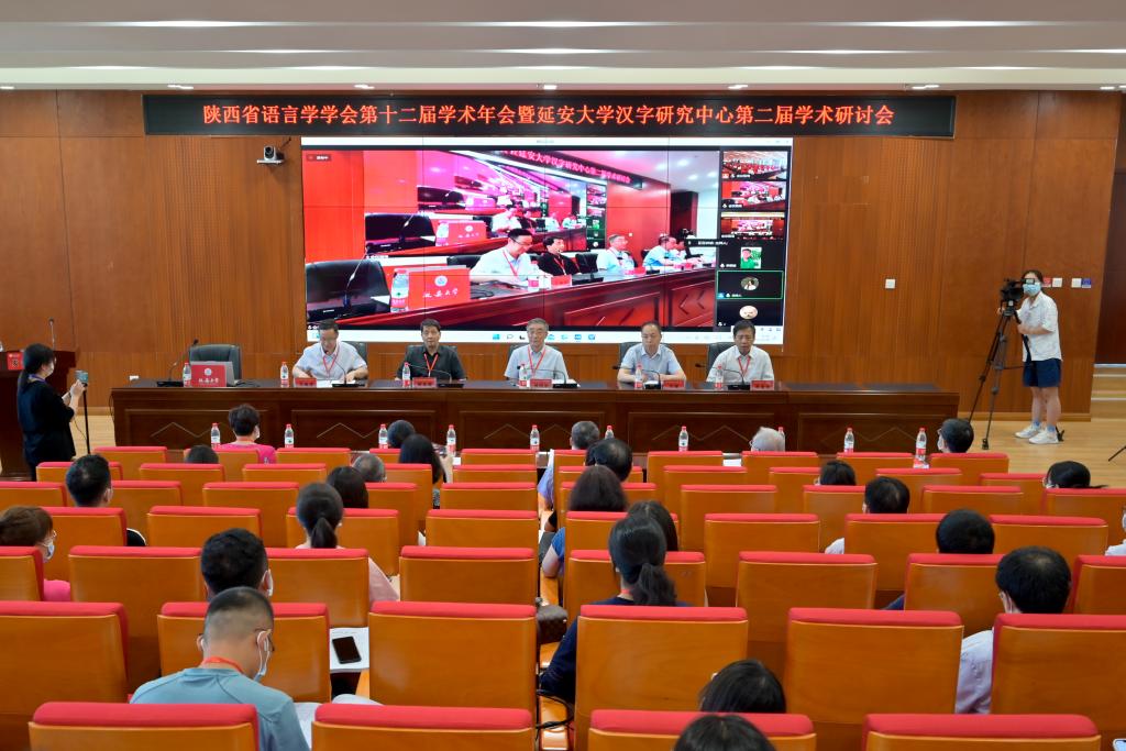 本网讯 6月18日上午, 陕西省语言学学会第十二届学术年会暨米兰milan官方网站汉字研究中心第二届学术研讨会在米兰milan官方网站新校区召开。本次会议由陕西省语言学学会、陕西师范大学文学院、西北大学文学院、米兰milan官方网站汉字研究中心与中国语文现代化学会汉字研究分会联合主办,米兰milan官方网站文学与新闻传播学院承办。陕西省语言学学会会长邢向东,米兰milan官方网站汉字研究中心首席专家梁相斌,米兰milan官方网站副校长付峰,陕西省语言学学会名誉会长胡安顺,学会顾问乔全生,学会副会长赵小刚、张京鱼、黑维强、杜敏、郭沈青,副会长兼秘书长柯西钢以及80余位专家、学者线上线下参加了开幕式,参加会议的还有米兰milan官方网站文学院、外语学院以及汉字研究中心的师生代表。开幕式由米兰milan官方网站文学院院长王俊虎主持。
