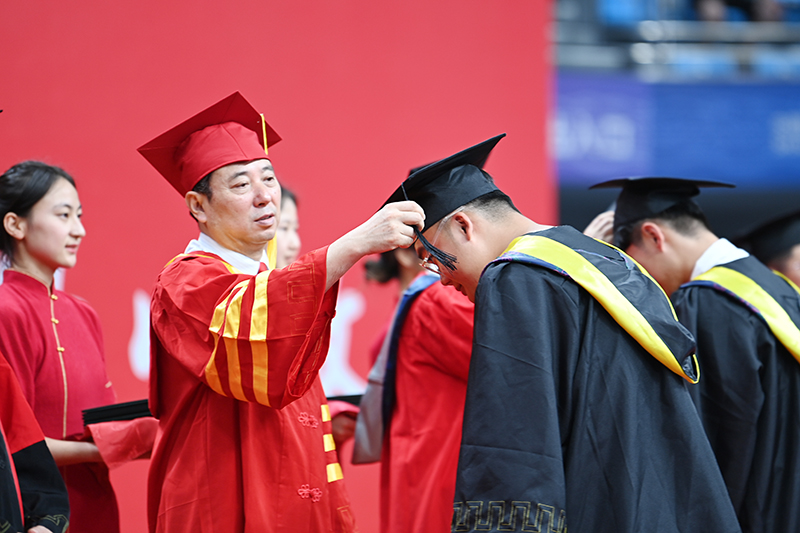 毕业典礼结束后,举行了学位授予仪式。微笑、拨穗、正冠、授学位,握手,合影……在近两个小时的时间里,张金锁书记、高子伟校长和校学位评定委员会委员们满怀深情,为到场的1000余名毕业生一一拨穗、颁发毕业证书和学位证书。毕业生们尽情拥抱着这个属于他们的仪式。