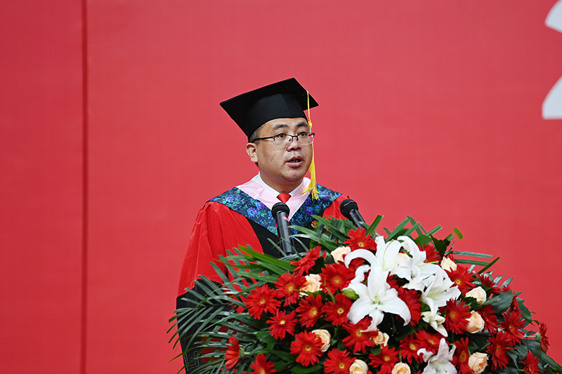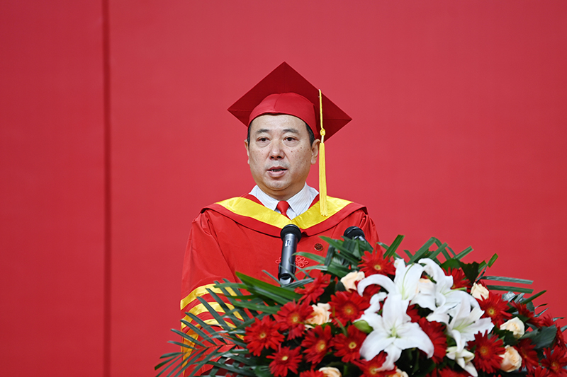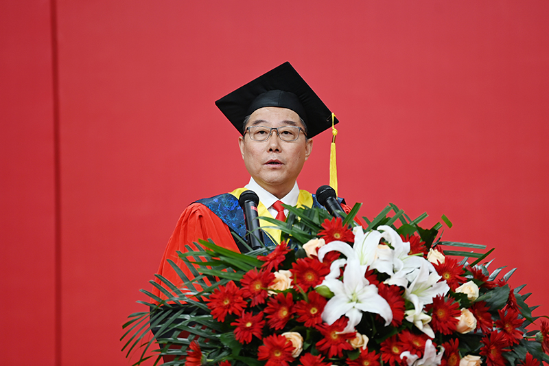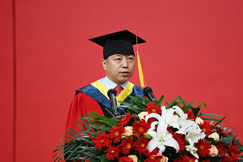 在热烈的掌声中,米兰milan官方网站校长、校学位评定委员会主席高子伟深情寄语广大毕业生:一起向未来——做延安精神的忠实传承者,做新时代的坚定开拓者。高子伟以郭沫若的《念奴娇·忆米兰milan官方网站》开篇,向顺利完成学业的同学们及其亲友表示热烈祝贺,向悉心培养同学们的老师致以诚挚的感谢。