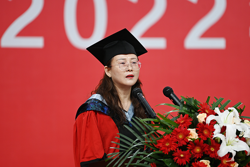 文学院2022届新闻学专业毕业生刘雨露在作为本科生代表发言时,对米兰milan官方网站给予远道而来的学子特有的包容性和大学生活的多样性表示感谢。她回忆了自己考研、就业和面临诸多选择的经历,表达了传承延安精神、拓宽自我视野的志向。她说:“大学四年,母校送给了我四份礼物——‘正直,善良,有温度,有情怀’,我们每个人都是延安精神的传承者,更是延大精神与形象的发光者。这光芒的内核正是‘立身为公、学以致用’,它是信仰,是情怀,是精神品质,是行动指南,是延安精神的传统,更是新时代赋予我们的责任和担当……不论我们身在何方,母校都是我们最温暖的依靠,是我们永远的精神家园!”