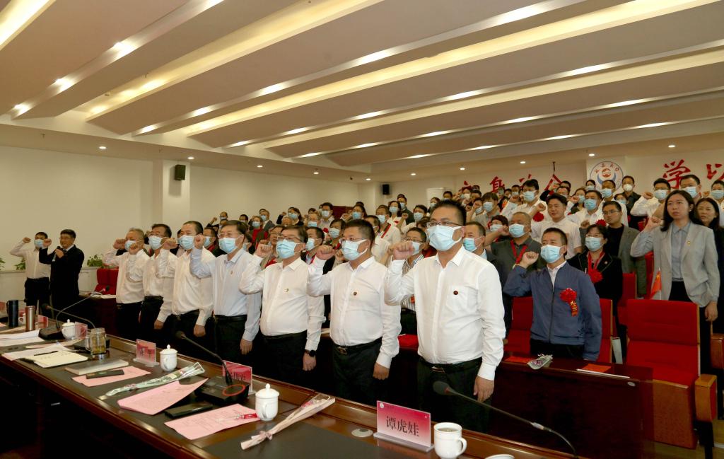 “忠于党的教育事业,贯彻党的教育方针,履行教师的神圣职责.....”在外国语学院梁润生教授的带领下,全体教师重温了教师誓词,面对五星红旗进行了庄严宣誓。