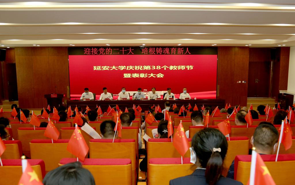 张金锁作了题为《坚持用延安精神熔铸师魂,做党和人民满意的“四有”好老师》的讲话。他指出,教师是学校发展的第一资源,是我们建设更有特色、更有水平大学最可信赖的资源,承载着学生成长成才和学校建设发展的重任。今年是学校建校85周年,也是习近平总书记重要批示5周年,学校的建设发展进入了全新的阶段,高质量发展的任务也更加艰巨,建设一支师德高尚、业务精湛、结构合理、充满活力的高素质、专业化、创新型教师队伍成为更有特色、更有水平大学建设的一项重要任务。就进一步加强教师队伍建设,张金锁对学校广大教师提出三点希望和要求,一是深入学习贯彻习近平总书记关于教育的重要论述,不断增强为党育人、为国育才的责任感和使命感。要强化思想引领、勇担育人使命,牢记殷切嘱托、奋力担当作为,传承红色基因、培育一代新人,在“强特色”新征程中勇担培育时代新人的历史使命。二是坚持用延安精神熔铸师魂,争做立德树人“大先生”。要自觉弘扬延安精神,在坚定理想信念、修炼师德师风、提升专业技能、厚植仁爱之心上持续下功夫,努力成为“经师”和“人师”相统一的大先生。三是坚持尊师重教,为教师职业发展提供坚强保障。要持续深化改革,搭建发展平台,加强和改善服务保障,让崇尚知识、尊师重教在学校蔚然成风,让广大教师们在延大安心从教,潜心科研,幸福生活。最后张金锁强调,当前学校正处于“强特色”新征程的关键时刻,学校改革攻坚的任务艰巨。希望全体教职工发扬主人翁意识,踔厉奋发,笃行不怠,积极投身到更有特色、更有水平大学的建设中,以立德树人的优异成绩迎接党的二十大的胜利召开。