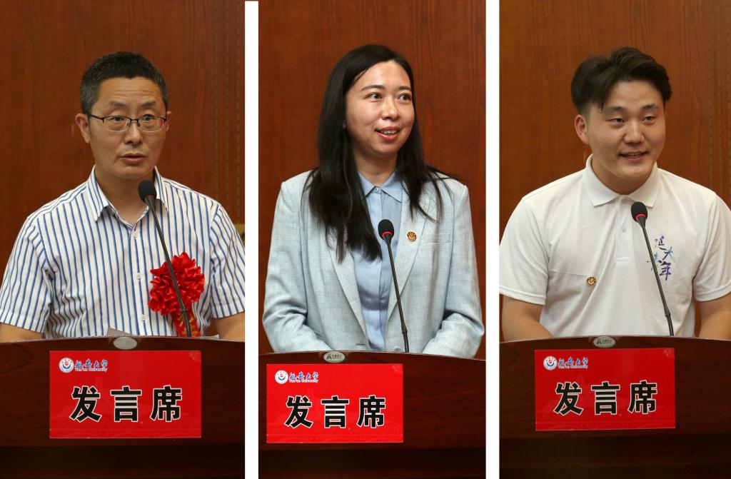 教师代表、石油学院教师李茜在发言中分享了自己的成长经历和从教感悟,抒发了对教育事业的由衷热爱。她期望与所有青年教师一起,不忘立德树人初心,履行好教书育人使命,以更加昂扬向上的奋斗姿态和强烈的责任担当,为建设更有特色、更有水平大学贡献青春力量。