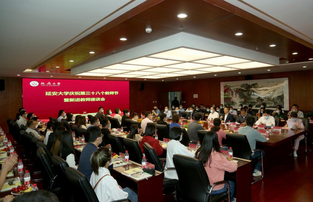 座谈会上,全体新进教师进行了佩戴校徽仪式,新进教师从毕业院校和专业以及入职学院等方面进行自我介绍,并表示将尽快融入延大,融入学科专业建设,为学校的教育事业高质量发展贡献自己的力量。