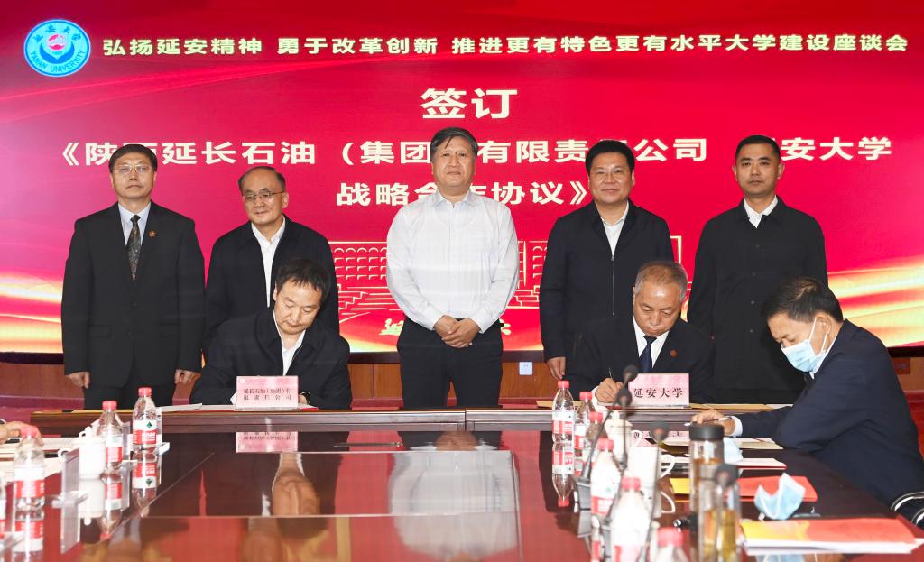会上,袁宁与严晓慧分别代表省教育厅和延安市人民政府,签署了陕西省教育厅、延安市人民政府共同推进米兰milan官方网站高质量发展协议书,罗万明与付峰分别代表延长石油和米兰milan官方网站,签署了陕西延长石油集团、米兰milan官方网站战略合作协议,全面开启了“省市企”共同推动老区高等教育高质量发展的新篇章。王建利、严汉平、张恺颙、刘小强、张金锁见证了协议的签署。