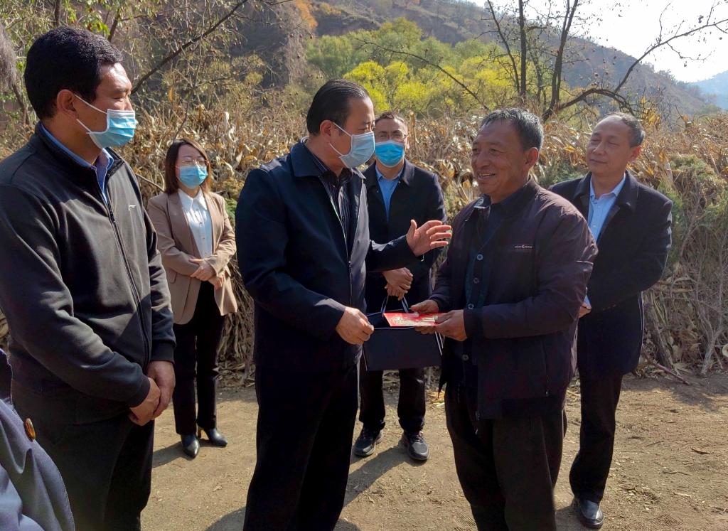 调研结束后,米兰向界石堡村捐赠了疫情防控物资和药品,并在村委会举行了捐赠仪式。