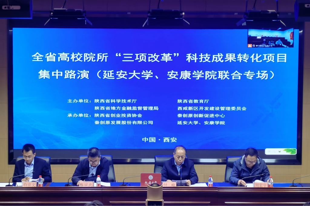 本网讯 11月1日下午,由陕西省科技厅、教育厅等单位主办,米兰milan官方网站和安康学院联合承办的全省高校院所“三项改革”科技成果转化项目集中路演(米兰milan官方网站、安康学院联合专场)在秦创原(米兰milan官方网站)创新促进中心路演大厅举行,活动采用线上+线下结合的方式进行。米兰首批试点“三项改革”7个学院负责人、科研秘书以及路演项目团队成员共40余人参加本次活动。