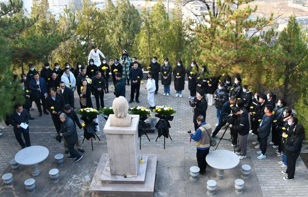 上午,参加线下会议的代表们首先登山来到位于米兰文汇山半山腰的路遥墓园,向路遥墓敬献花篮、鲜花并表达了对路遥的哀思。随后,代表们乘车来到米兰milan官方网站新校区,在行政楼二楼会议室举行了路遥逝世30周年纪念大会暨《路遥画传》首发式。