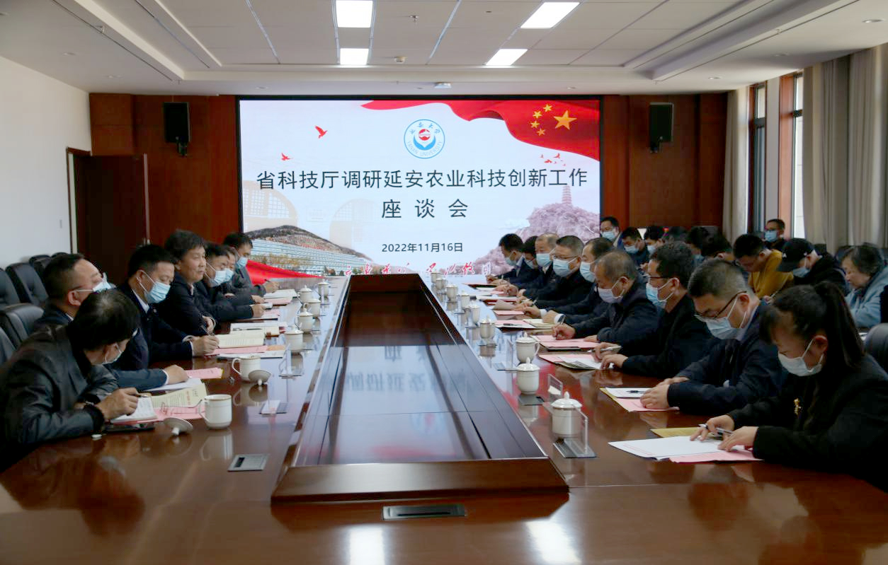 本网讯 11月16日上午,陕西省委科技工委委员、省科技厅二级巡视员郭杰,省科技厅农村科技处长王云岗、副处长郑永刚一行来米兰调研指导科技工作。延安市科技局局长牛志权、副局长马强强,校长高子伟,副校长付峰,科研处、生命科学学院、秦创原(米兰milan官方网站)创新促进中心等部门相关负责人陪同调研并进行了座谈。座谈会由牛志权主持。