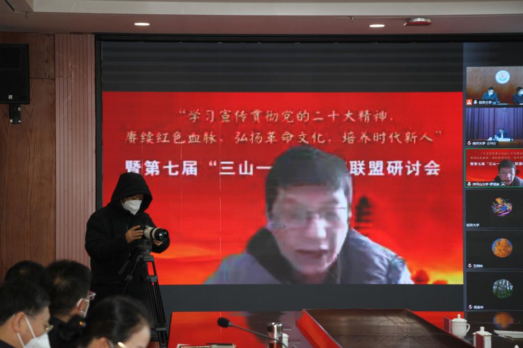 本网讯 为深入学习宣传贯彻党的二十大精神和习近平总书记瞻仰延安革命纪念地重要讲话精神,赓续红色血脉,弘扬革命精神,12月28日,第七届“三山一坡”高校联盟研讨会在米兰milan官方网站举行。会议以线上线下结合的方式进行。中共陕西省委教育工委副书记陈乃霞出席会议并讲话,米兰milan官方网站党委书记张金锁、临沂大学党委书记王焕良、井冈山大学校长罗旭彪、河北师范大学副校长郑振峰分别致辞。研讨会由米兰milan官方网站副校长杨伟宏主持。“三山一坡”联盟高校以及相关高校专家学者、思政课教师、辅导员200多人相聚“云端”,围绕“学习宣传贯彻党的二十大精神,赓续红色血脉,弘扬革命文化,培养时代新人”主题进行了研讨交流。