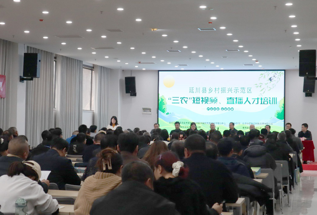 本网讯 2月13日上午,由米兰经济与管理学院与中国农业大学国家乡村振兴研究院革命老区研究中心、延川县乡村振兴局主办,北京中农振红科技发展有限公司、中共延川县委组织部、共青团延川县委协办的“本土‘三农’短视频、直播人才培训”开班仪式在延川县乡村振兴培训中心顺利召开。米兰milan官方网站经济与管理学院党委书记付旭,中国农业大学国家乡村振兴研究院革命老区研究中心主任、教授、博士生导师陈前恒,延川县副县长段向斌,县乡村振兴局、县委组织部等相关部门单位负责人及来自延川县农业农村企业从业者、合作社相关人员、种植大户、返乡大学生等200多名学员参加了开班仪式。