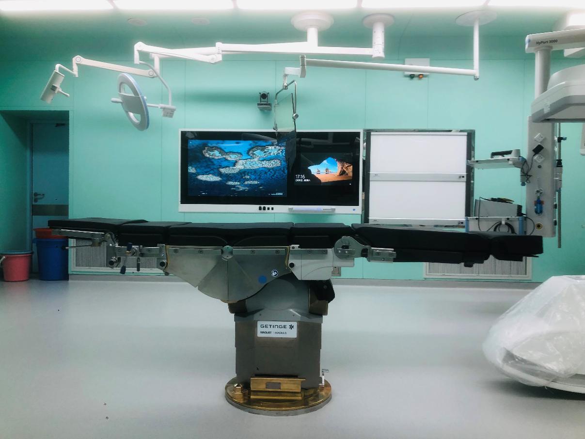 复合手术室内配备有云美达数字化信息系统,通过4K手术视野摄像机、高清全景摄像机以及4K显示器和医疗吊臂显示器,清晰显示手术画面,并进行影像信息采集、传输、显示。通过设备的集约化布局、物联网技术的应用,实现同一时间轴各设备、各系统的标准化数据采集、记录和存储。