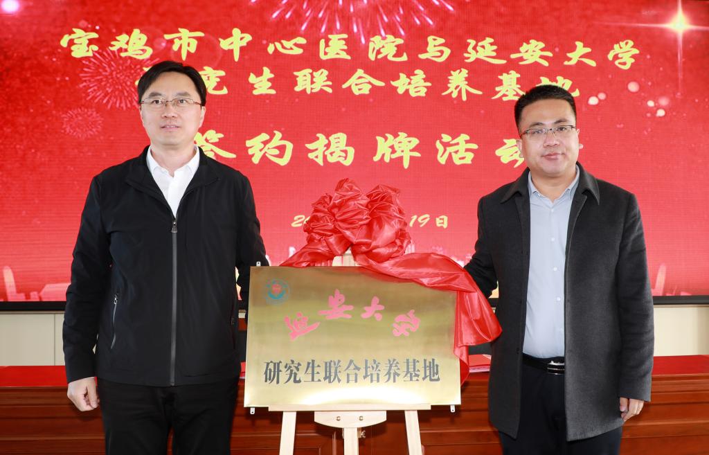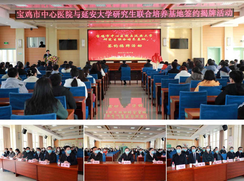 随后,研究生院常务副院长王文强宣读了研究生培养基地批复文件;医学院院长韩继明和宝鸡市中心医院院长拓文共同签订了研究生联合培养基地协议;宝鸡市委常委、副市长刘宏阳和副校长谭虎娃共同为研究生联合培养基地揭牌。所有与会人员观看了医院2022年十大优势技术展示专题片。