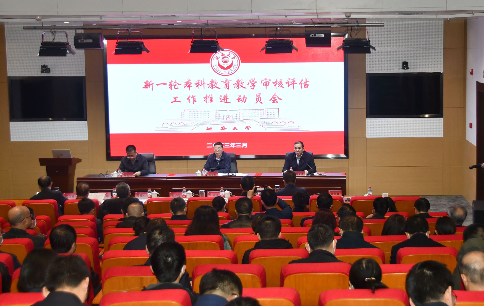 第一阶段,副校长谭虎娃安排部署了推进审核评估的各项工作,从审核评估各阶段工作任务、各部门各学院任务分解、支撑数据的收集整理、档案材料的规范统一、按进度协同推进工作等五个方面进行了布置说明。