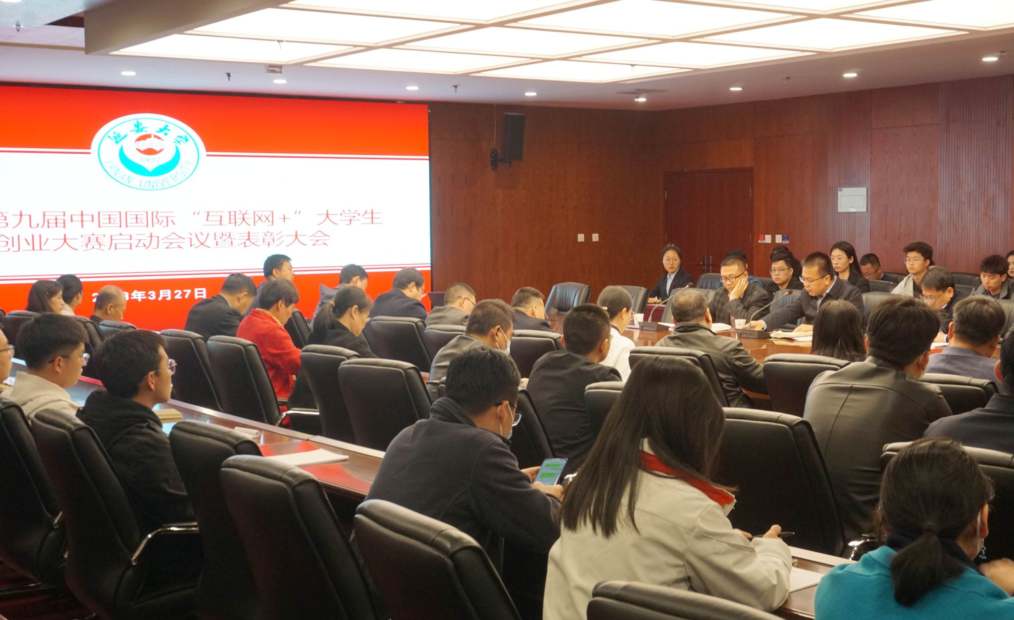 本网讯 3月27日下午,米兰在新城校区行政楼二楼会议室召开第九届中国国际“互联网+”大学生创新创业大赛启动会议暨表彰大会。副校长谭虎娃,教务处,各学院教学副院长、教学秘书和教务员,创新创业学院导师,优秀组织单位负责人、优秀指导教师和获得国家铜奖、省级金奖、省级银奖的项目负责人参加了会议,会议分两个阶段进行,第一阶段颁奖表彰由教务处处长吕磊主持;第二阶段专题讲座由教务处副处长高生军主持。