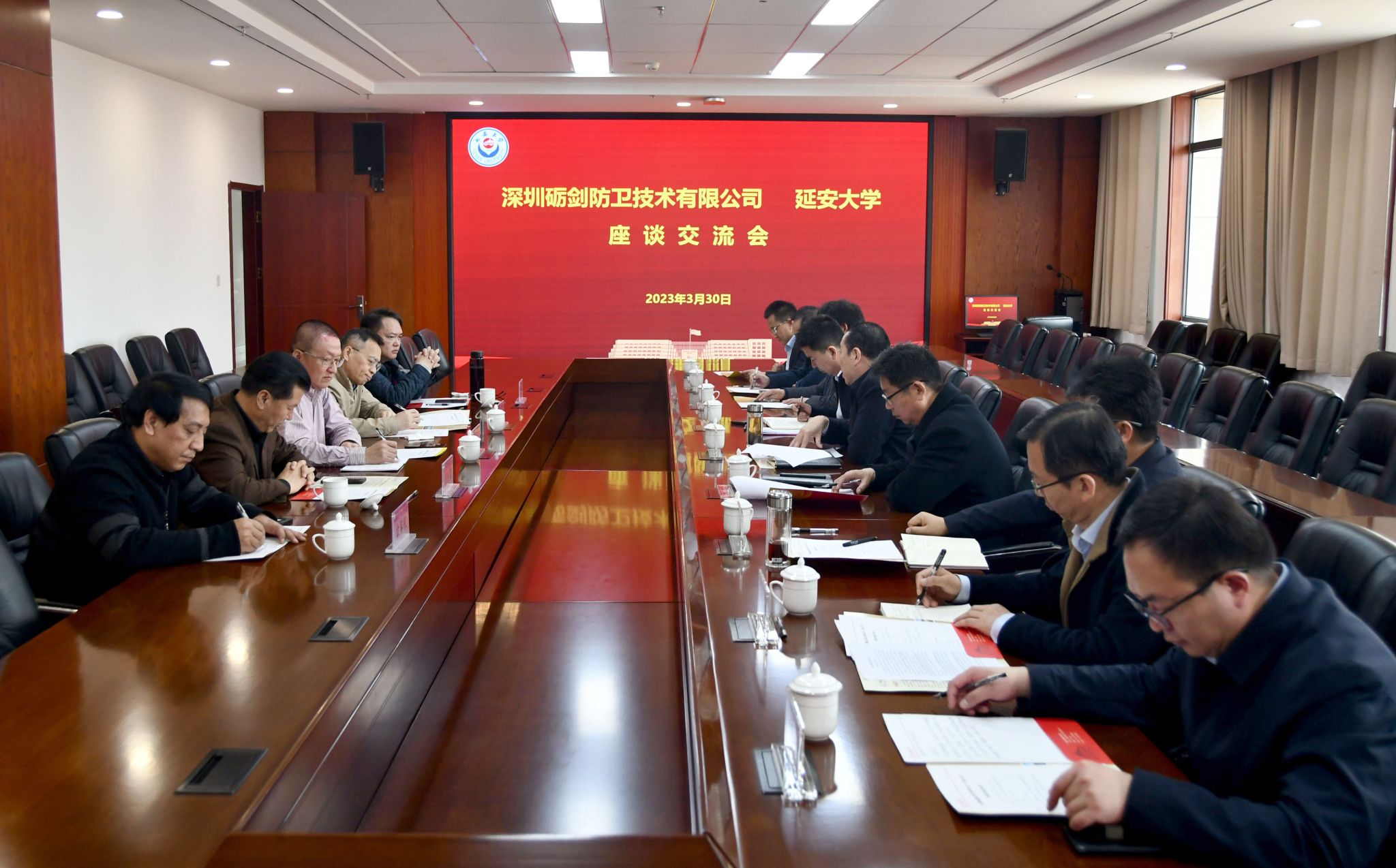 本网讯 3月30日上午,深圳砺剑防卫技术有限公司董事长蔡文斌、总经理许亮等一行来校调研交流,米兰校长高子伟、副校长吕达,党校办、对外交流与合作处、科研处、化工学院、数计学院、石油学院、物电学院等单位负责同志参加调研座谈会。座谈会在新城校区行政楼7楼会议室召开,会议由吕达主持。