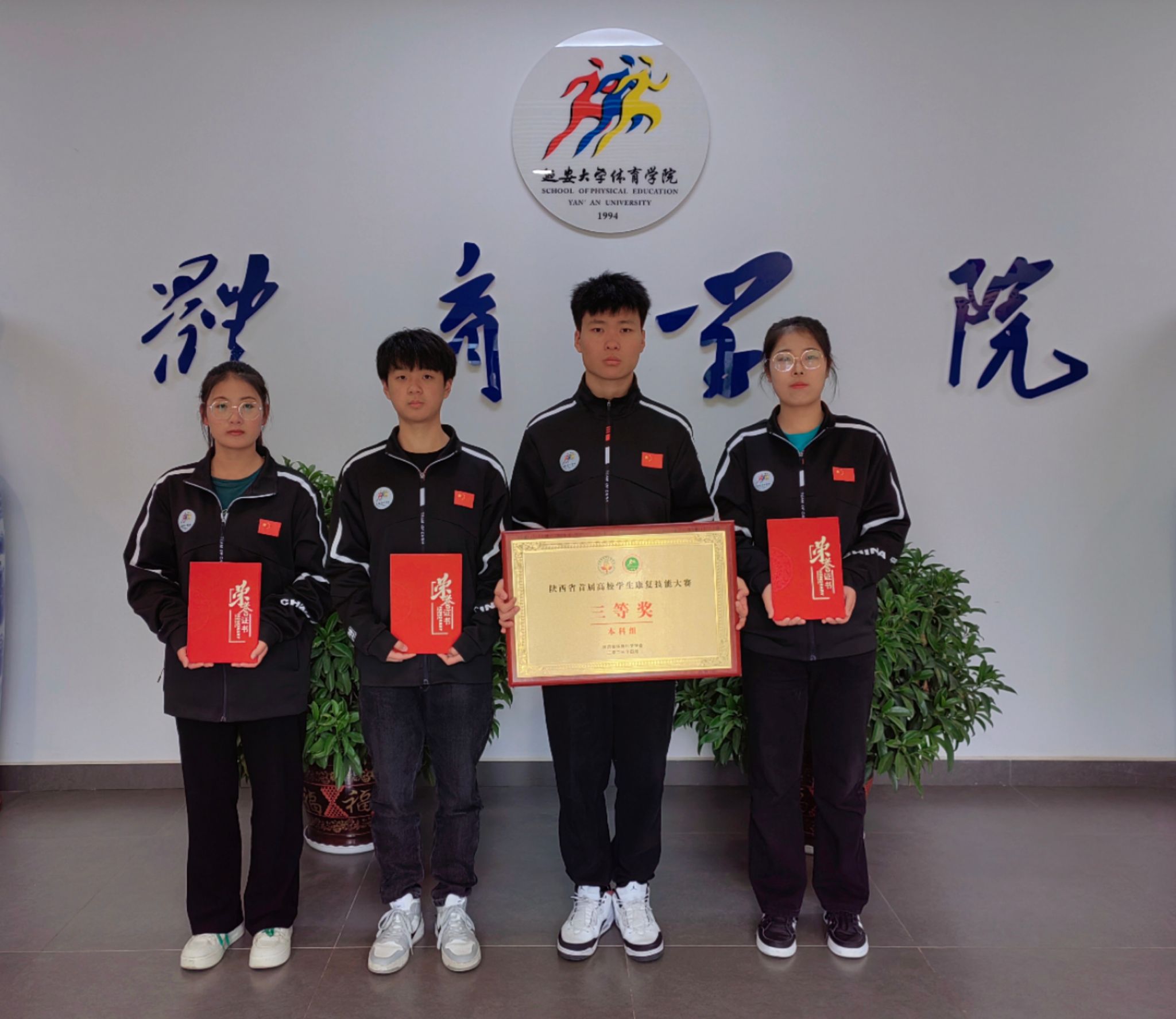 由体育学院运动康复系主任杨磊担任领队、李晓兰担任教练,武睿、惠江波、刘婷、张禹帆4名同学为成员的米兰代表队,与兄弟院校代表同台竞技、现场交流,最终荣获本科组团体三等奖,杨磊、李晓兰获得优秀指导老师奖,武睿、惠江波、刘婷三名同学获得个人优秀奖。