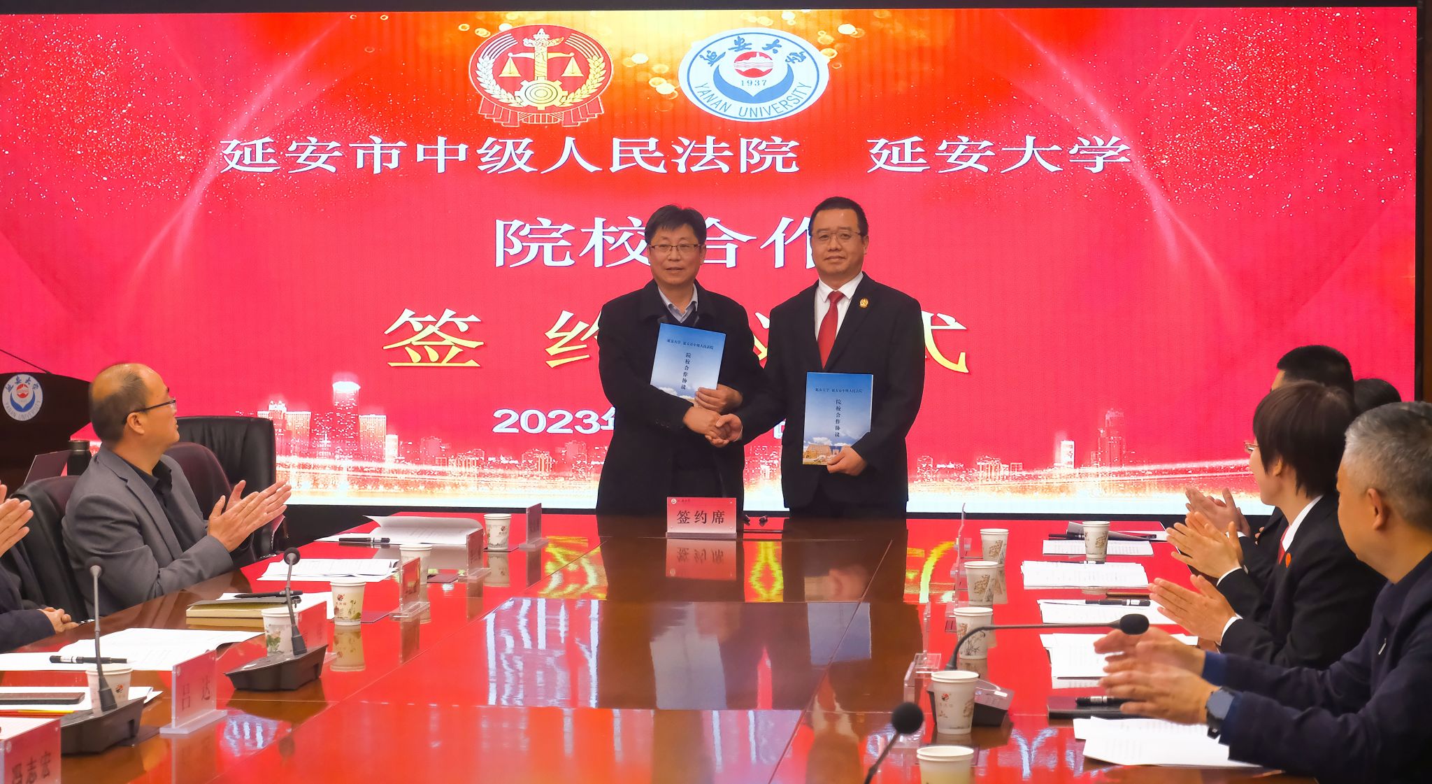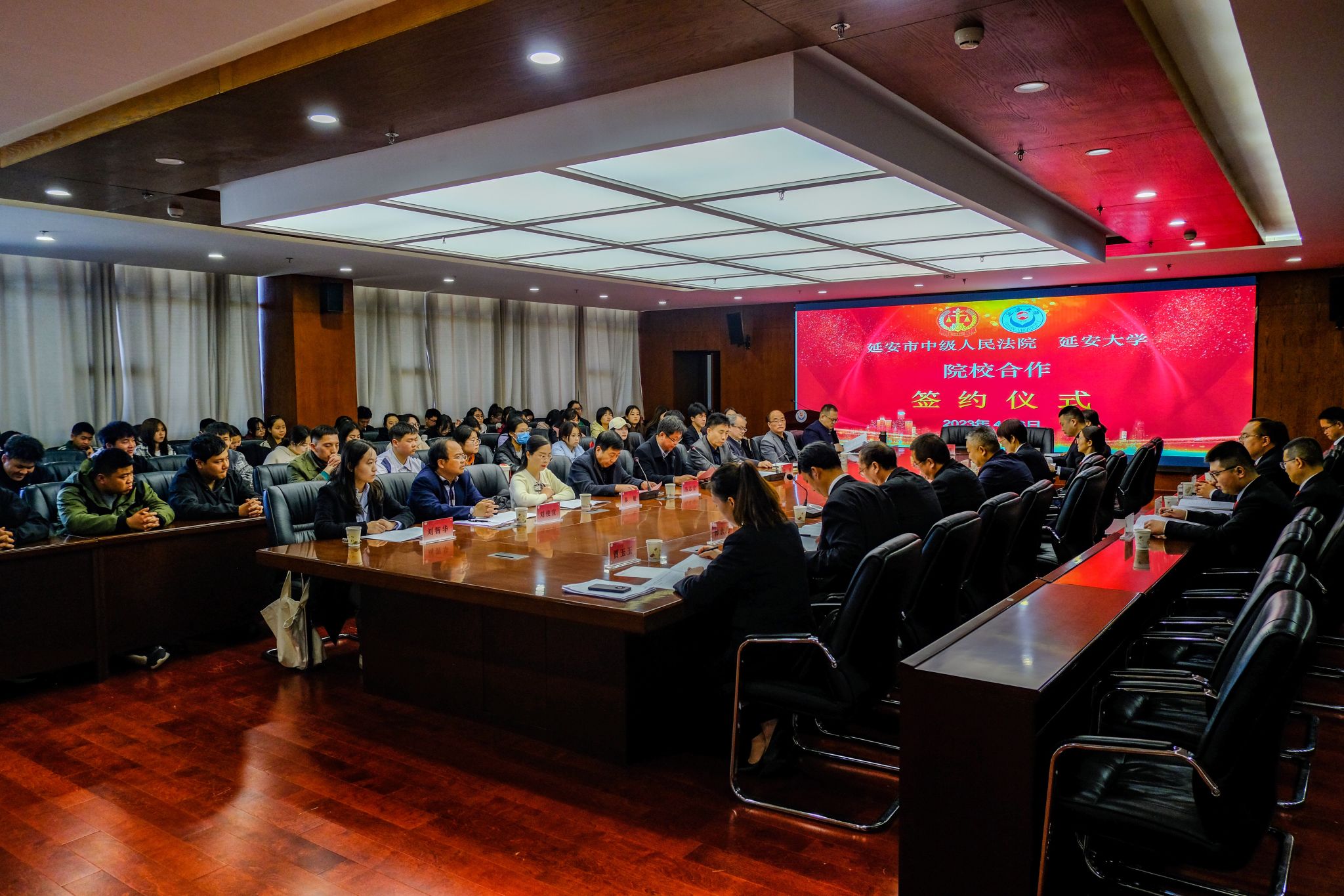 本网讯 2023年4月6日下午,米兰与延安市中级人民法院院校合作交流签约仪式在新校区行政楼二楼会议室举行。延安市中级人民法院党组书记、院长刘群,党组成员、副院长刘文武,米兰副校长吕达、人事处处长雷伟、政管学院院长冯志宏、政管学院党委书记李红金、政管学院副院长秦敏,延安市中级人民法院法官代表,法学专业师生代表等参加了会议。会议由冯志宏主持。