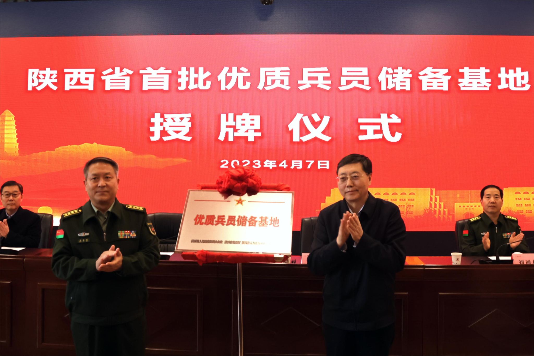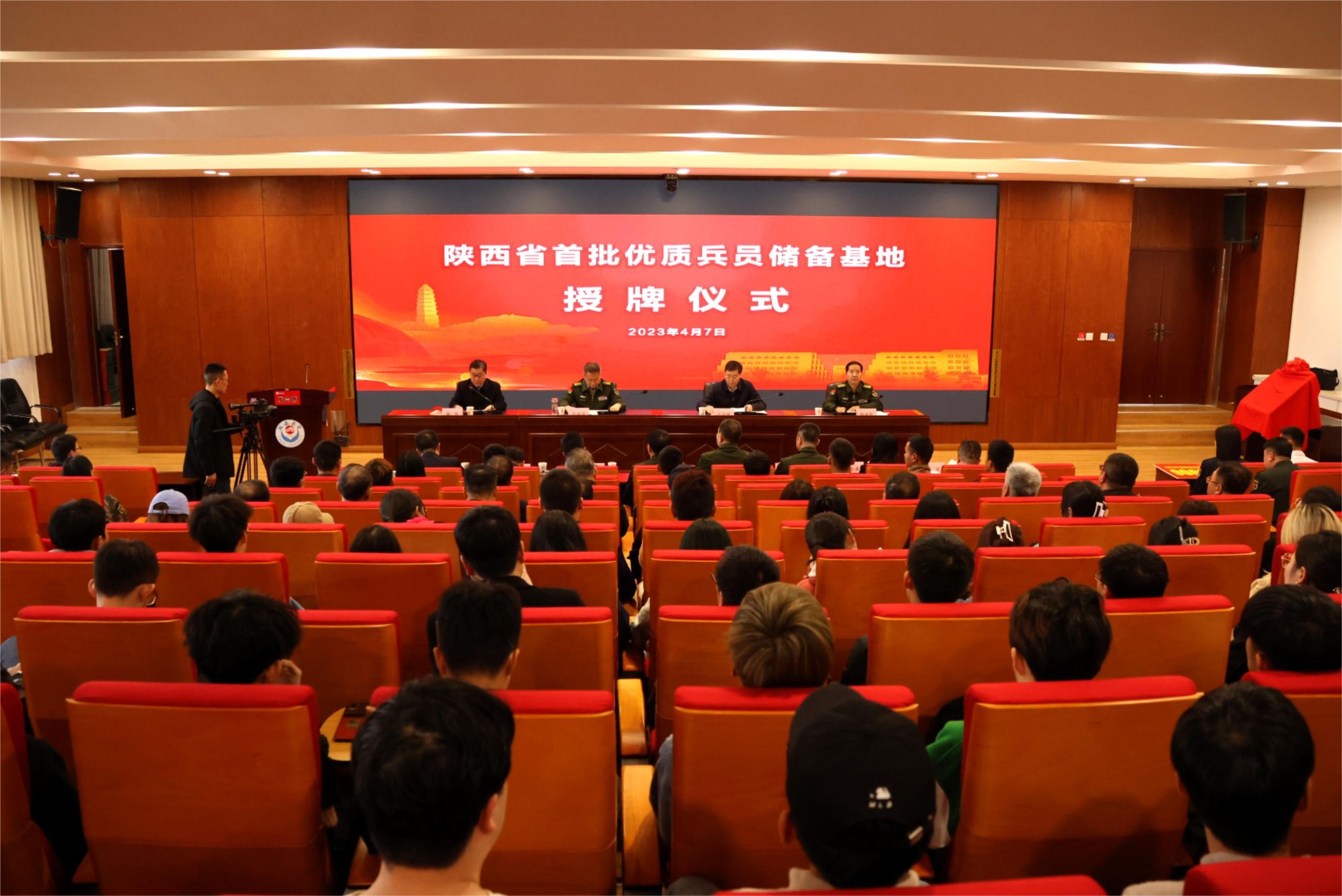 刘通柱宣读了由陕西省人民政府征兵办公室、陕西省教育厅和陕西省人力资源和社会保障厅印发的《关于批准设立“优质兵员储备基地”的批复》文件;王玉宝和张金锁共同为学校“优质兵员储备基地”揭牌。建筑工程学院土木20专业崔煜昊同学作为预征对象代表作了发言;学校征兵工作站负责人张翔作表态发言。