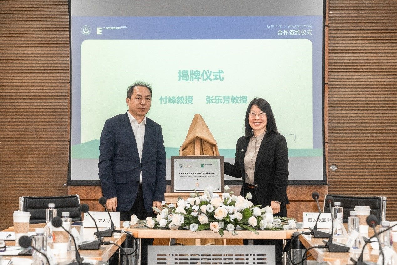 王进和谢涛代表双方签署战略合作协议,付峰和张乐芳为“米兰milan官方网站研究生教育西安欧亚学院教学中心”揭牌,所有与会人员见证签约。协议书的签订,标志着双方将在学科建设、人才培养、科学研究、资源共享等方面进一步加强合作,开启双方校际合作新篇章。