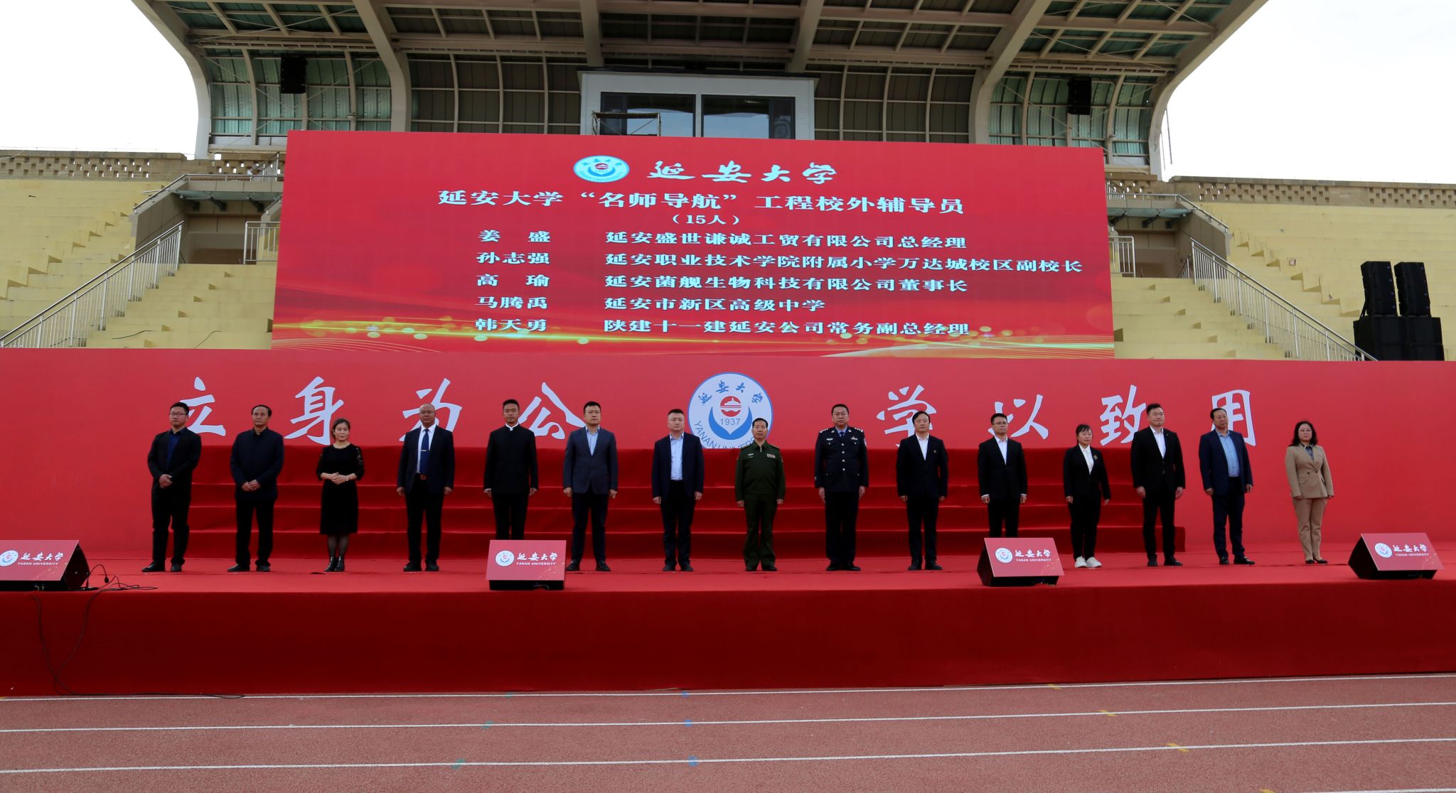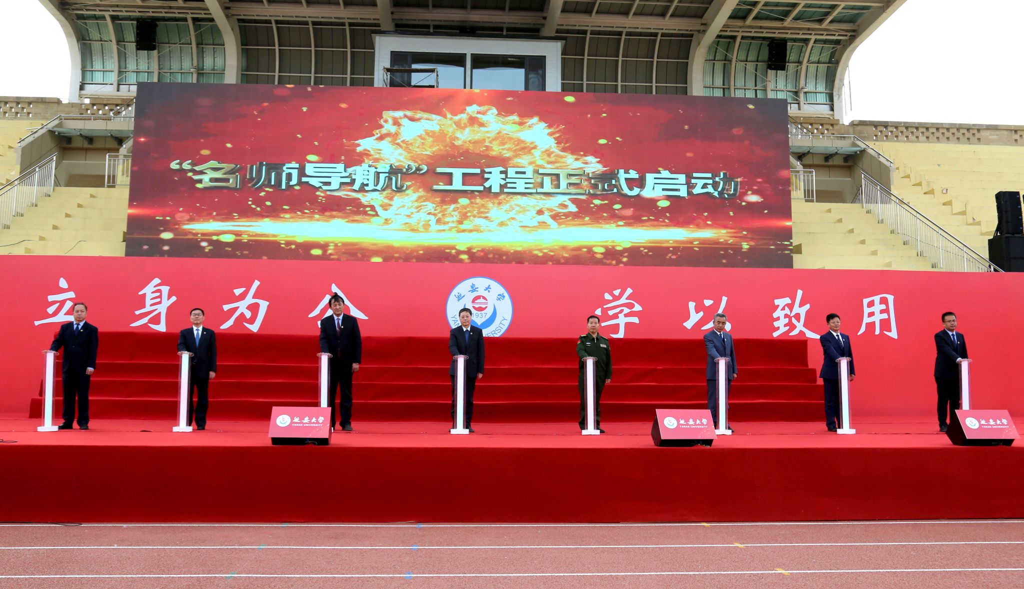 仪式上,全体校领导、陕西省教学名师梁向阳、延安军分区副司令员刘通柱一起上台,共同启动“名师导航”工程。