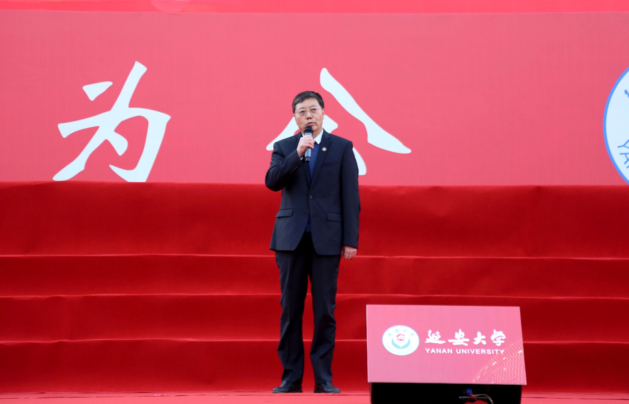 陈华副书记在讲话中指出,这次活动是抗击疫情三年以来,学校召开的规模最大、最为隆重的一次学生工作会议,是贯穿开学教育、表彰先进、名师导航的一次思政工作盛会,是米兰育人工作的一次大总结、大展示、大动员。尤其三年抗击疫情中,广大干部和教师用平凡而实实在在的行动,诠释了延大人的责任担当和大爱情怀。他特别强调:“今天,我们怀着十分激动的心情举行了庄严的迎国旗、升国旗仪式。之所以将其作为开学第一课,是因为这面国旗身份特殊,意义重大,她横跨时空,将共和国心脏与革命圣地更加紧密地联结在了一起,将教育强国战略与革命老区这所具有鲜红底色的大学更加紧密地联系在了一起。这面国旗是历史对时代的回响,是从培养抗日先锋队到培养具有延安精神特质的时代新人的历史接力,是对创办解放区新型高等教育探索之路到更有特色、更有水平大学建设之路的时代传承,是党和国家对我们始终扎根中国大地、办好人民满意大学的殷殷期盼和谆谆嘱托。”他表示,米兰将以“名师导航”系列工程为抓手,奋力开创“大思政”育人新格局,为推动学校高质量发展、为全面建设社会主义现代化国家作出新的更大的贡献。