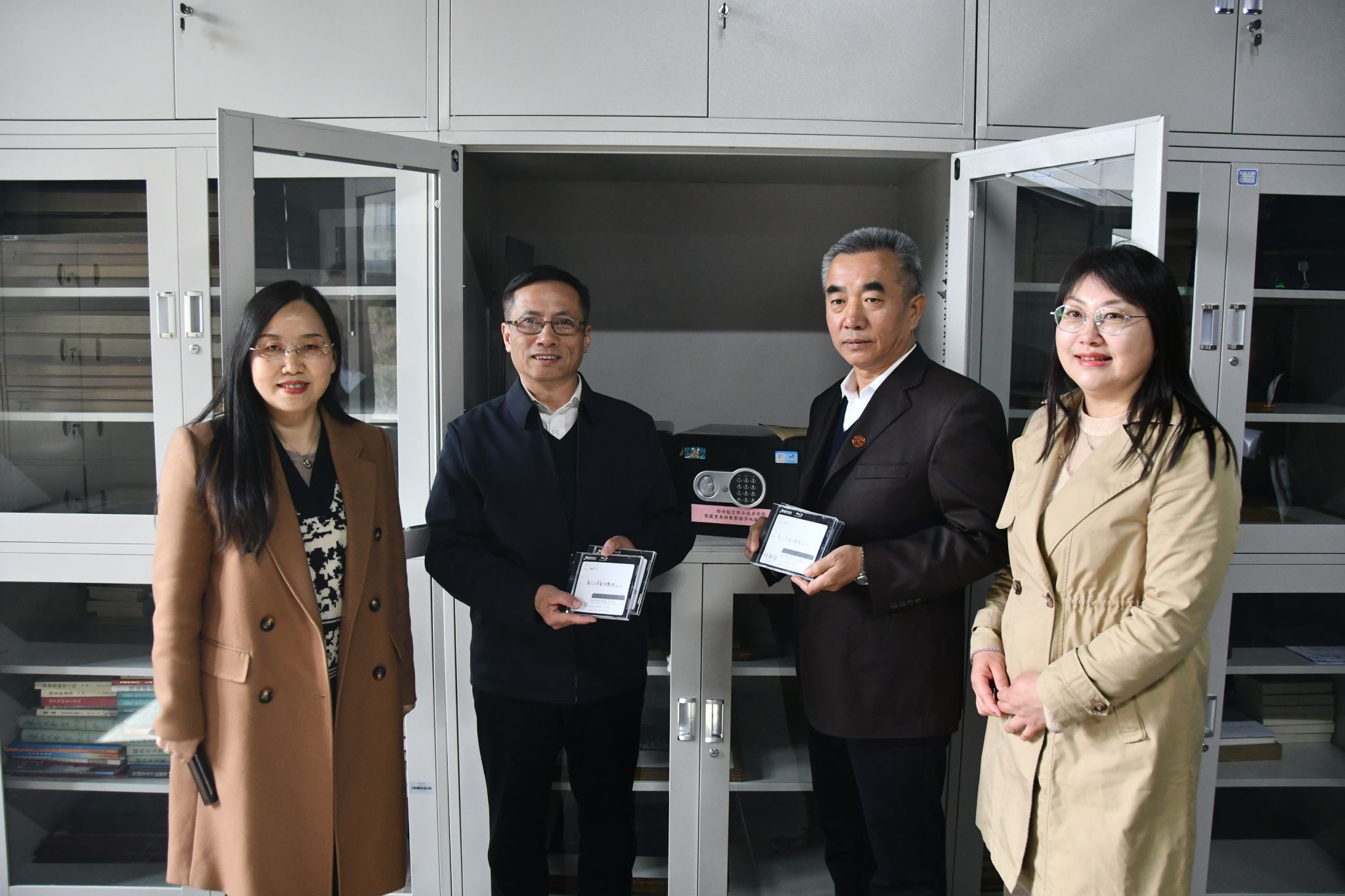 座谈会结束后,与会人员参观了图书馆、校史馆、文学院等,最后在档案馆共同见证了“重要档案备份数据”存放保险柜交接仪式。