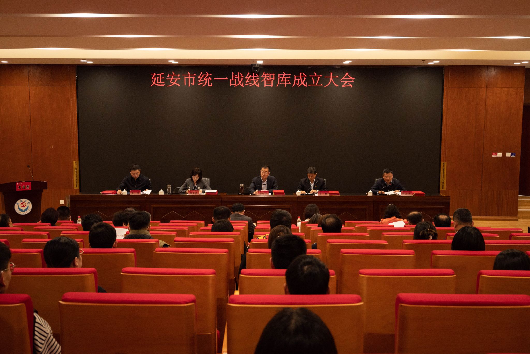 随后,胡统金、高峰共同为“延安统一战线理论研究中心”揭牌。胡统金在讲话中指出,要深刻理解延安统一战线智库和延安统一战线理论研究中心的成立意义,充分认识成立机构有利于研究阐释习近平总书记关于做好新时代党的统一战线工作的重要思想,有利于挖掘传承延安十三年统战光荣历史和遗存旧址,有利于巩固提升延安统战工作能力水平。精准精细加强建设,把握好政治方向,把握好体制机制,把握好服务意识,形成一批在省内外有影响的研究成果,为延安高质量发展提供宝贵智慧力量。