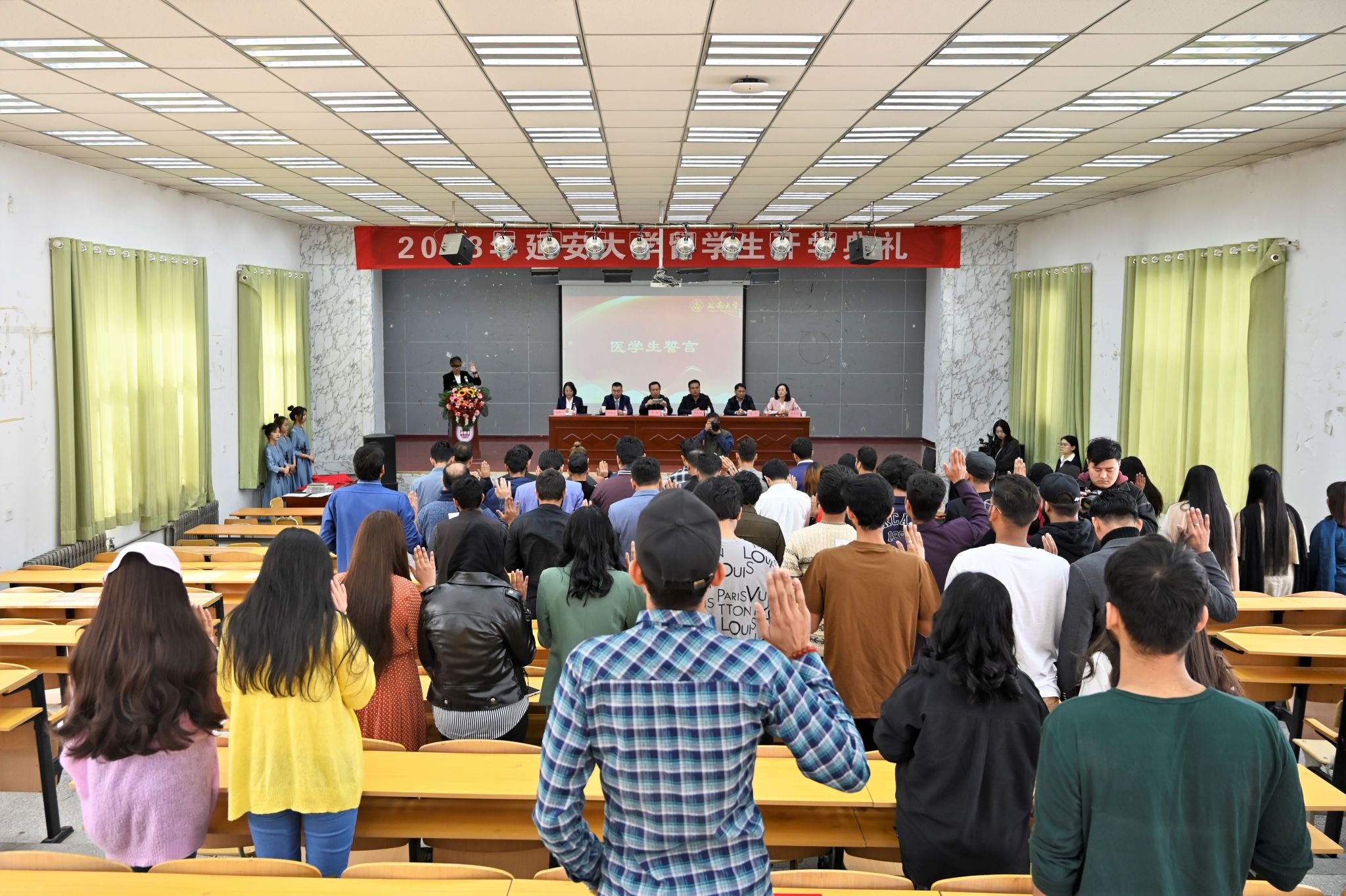 随后,大会对2021-2022年度优秀教师、优秀学生进行了表彰。与会领导和嘉宾向获奖师生颁了奖。留学生阿布带领所有留学生进行了医学生宣誓。
