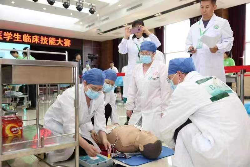 5月6日上午8:30正式开赛,初赛采用赛站式,设8个站点;决赛采用赛道式,设2个赛道。比赛项目涉及内科学、外科学、儿科学、急救医学等专业知识和人文关怀方面的内容。大赛邀请到空军军医大学唐都医院张云飞教授、西安大兴医院麻醉教研室主任韩丽春等作为解说嘉宾,进行现场点评。大赛全程线上直播,线上观赛累计达到1.5万人次。