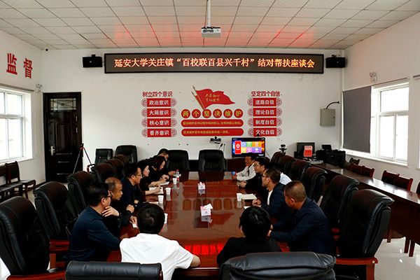 本次结对帮扶对象为关庄镇二八甲村和甄家湾村。在关庄镇镇政府会议室,工作组与镇领导班子成员、镇经济开发站负责人,以及二八甲村、甄家湾村驻村第一书记、村党支部书记等村干部进行了座谈交流。工作组分别就结对帮扶背景、学校和3个学院的基本情况、具备的条件和资源优势,以及本次调研的目的和下一步帮扶工作思路等作了简要介绍。镇党委副书记、镇长白世宏介绍了关庄镇概况,重点介绍了近年来关庄镇在推进乡村振兴建设中取得的经验和具备的发展潜力,以及当前发展中面临的问题。二八甲村、甄家湾村党支部书记马树勤和白云先后介绍了本村的基本情况,并就具体的帮扶需求作了说明。与会人员围绕如何实质性推进乡村振兴结对帮扶工作,从找准帮扶衔接点、完善帮扶的运行机制、拓宽创新帮扶路径、制定切实可行的帮扶方案等进行了深入探讨交流。