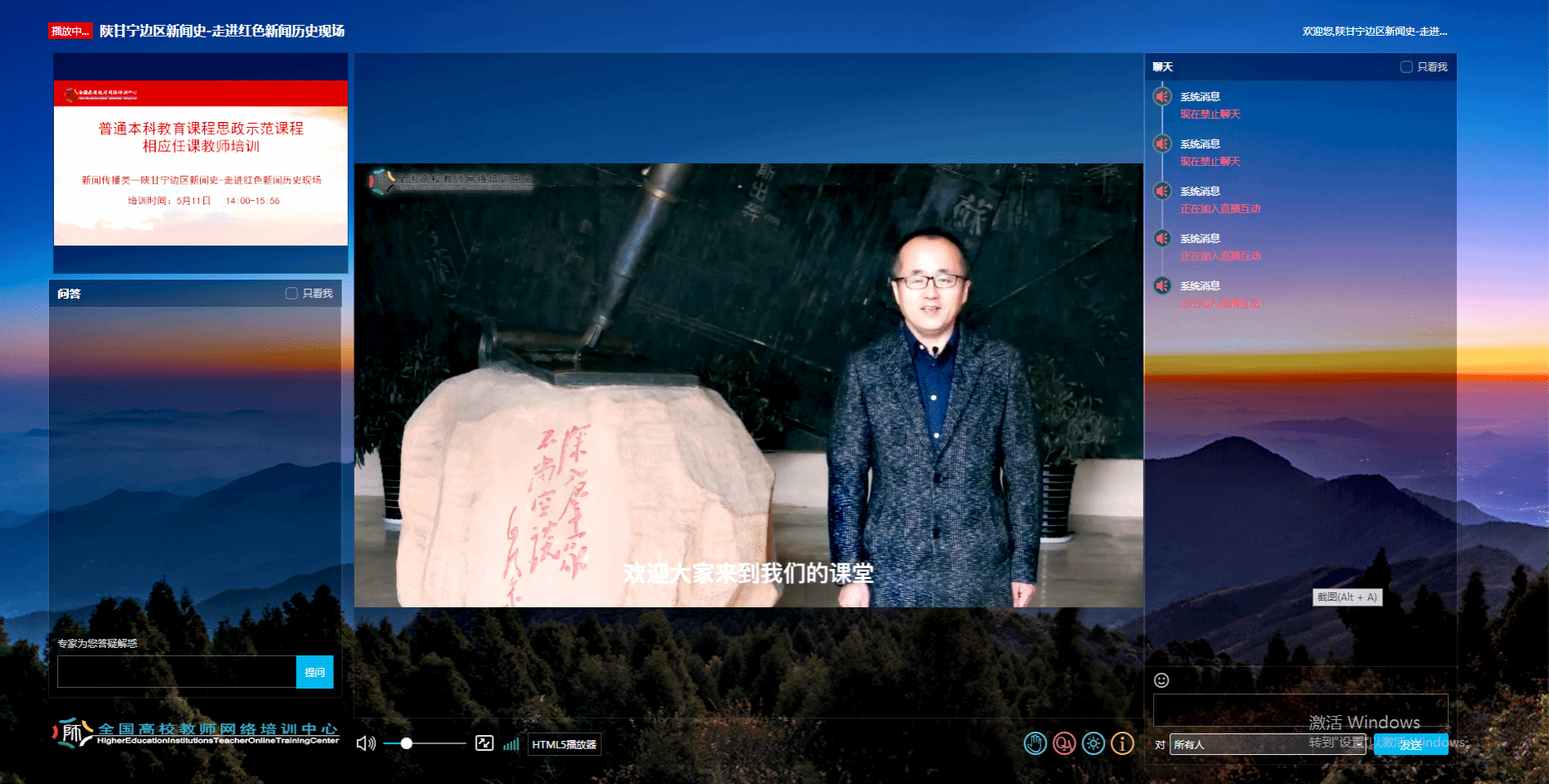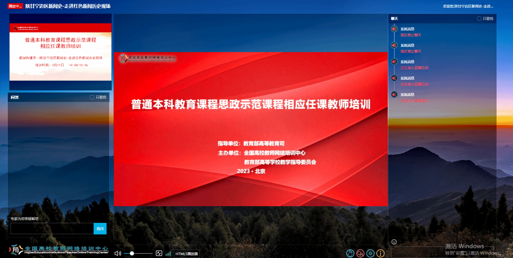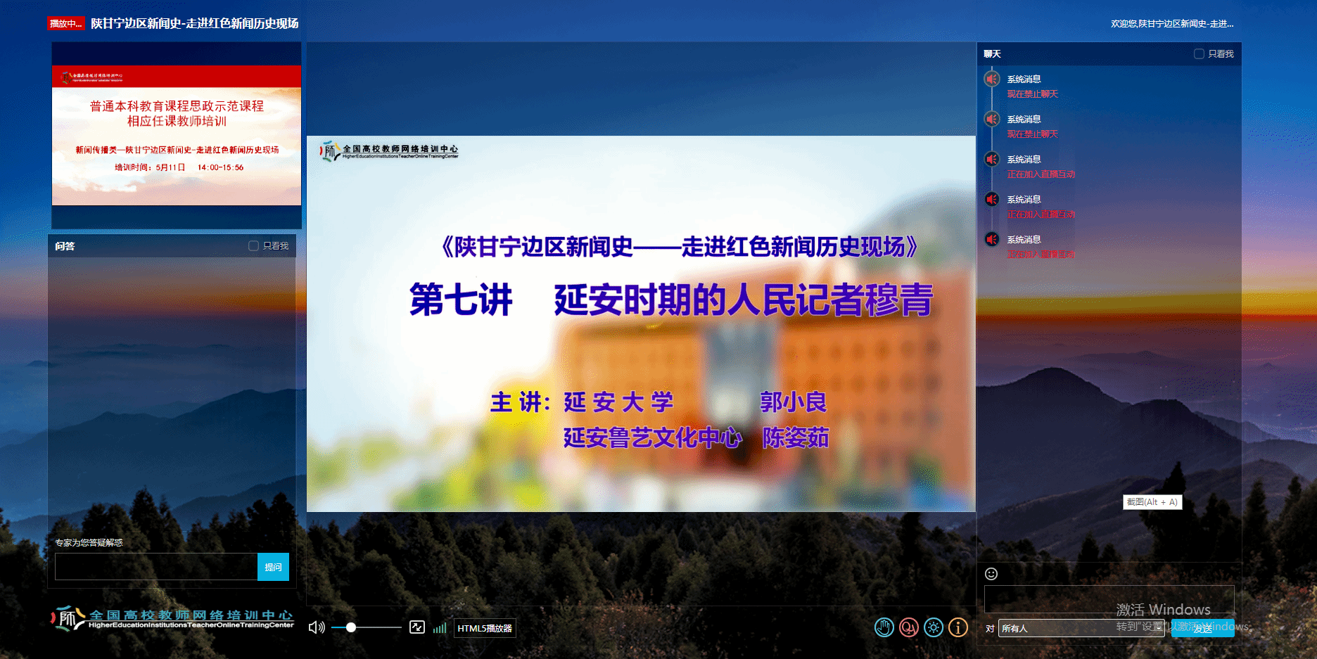 在5月11日下午的培训中,米兰教育部课程思政示范课程《陕甘宁边区新闻史—走进红色新闻历史现场》面向全国分享经验和做法。米兰该课程负责人郭小良通过说课视频,系统深入介绍了该课程的思政建设理念、育人目标实现以及课程建设效果等七个方面的内容。分享了由团队教师和延安鲁艺文化中心工作人员共同完成的课程案例:“延安时期的人民记者穆青”,并与听众进行了在线互动。教育部新闻传播教学指导委员会委员、西安交通大学杨琳教授和西北大学韩隽教授对该课程进行了点评,给予高度评价。