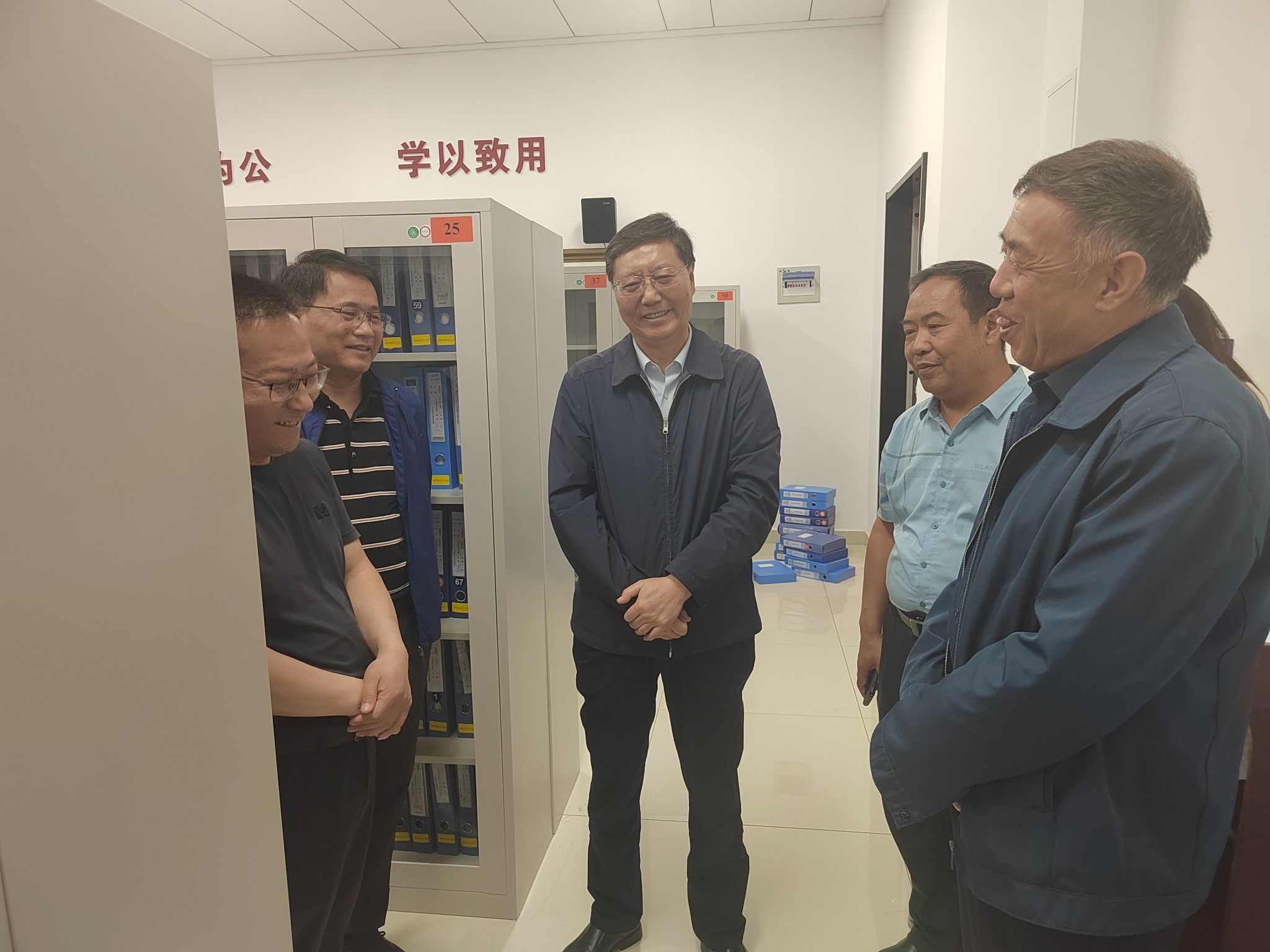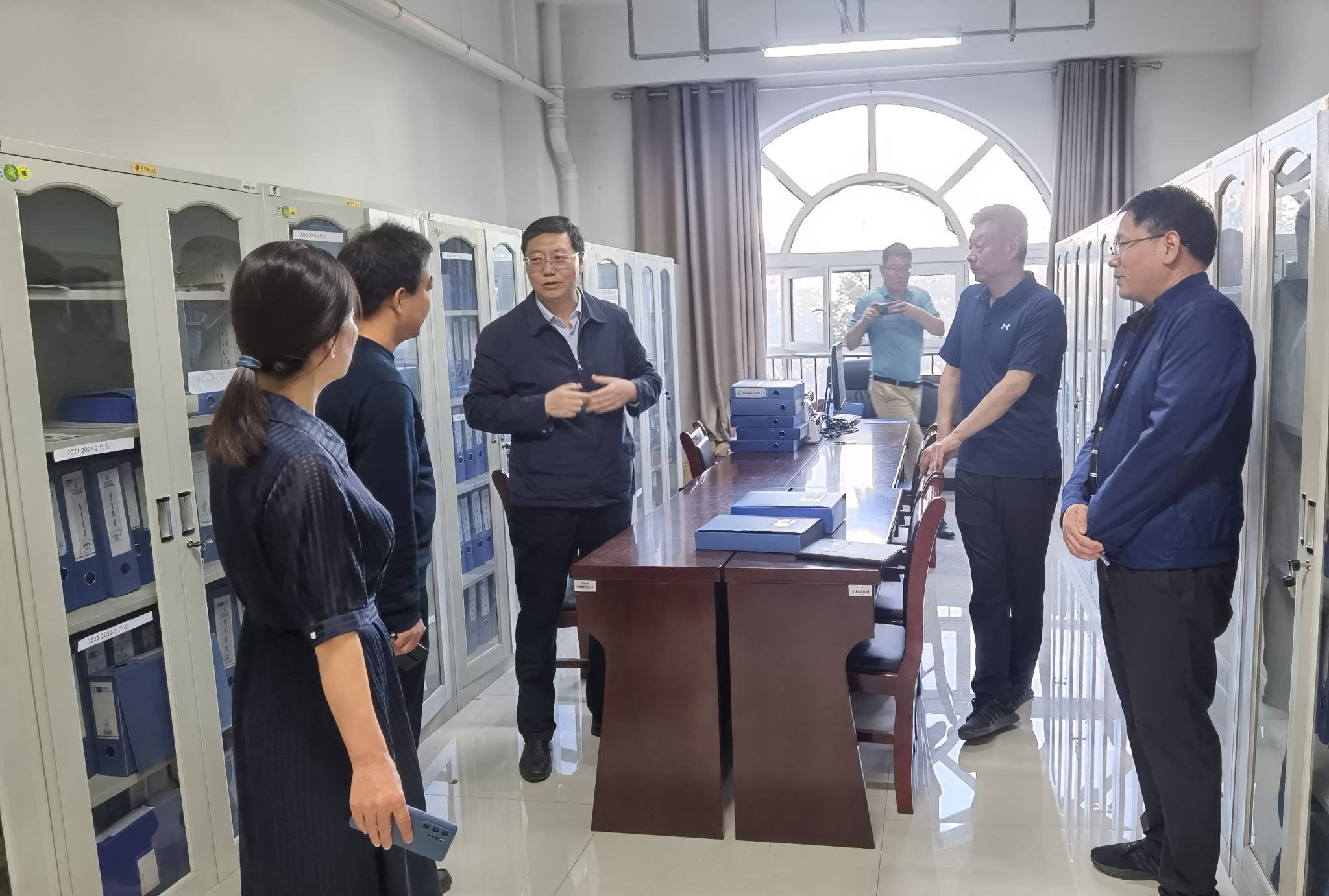 张金锁一行走进相关学院档案室,仔细翻阅学院评估档案材料,重点强调并要求,学院要确保各类档案材料的系统性分类和完整性保存,在线上线下评估期间,确保档案材料和支撑材料精准有力。要坚持党政齐抓共管,协同推进,高效率高标准高质量完成本科教育教学审核评估各阶段工作。