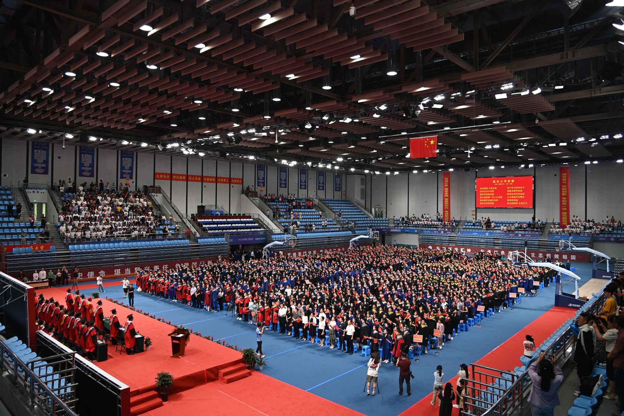 学位授予仪式前,在场全体师生起立,共同唱响《米兰milan官方网站校歌》。