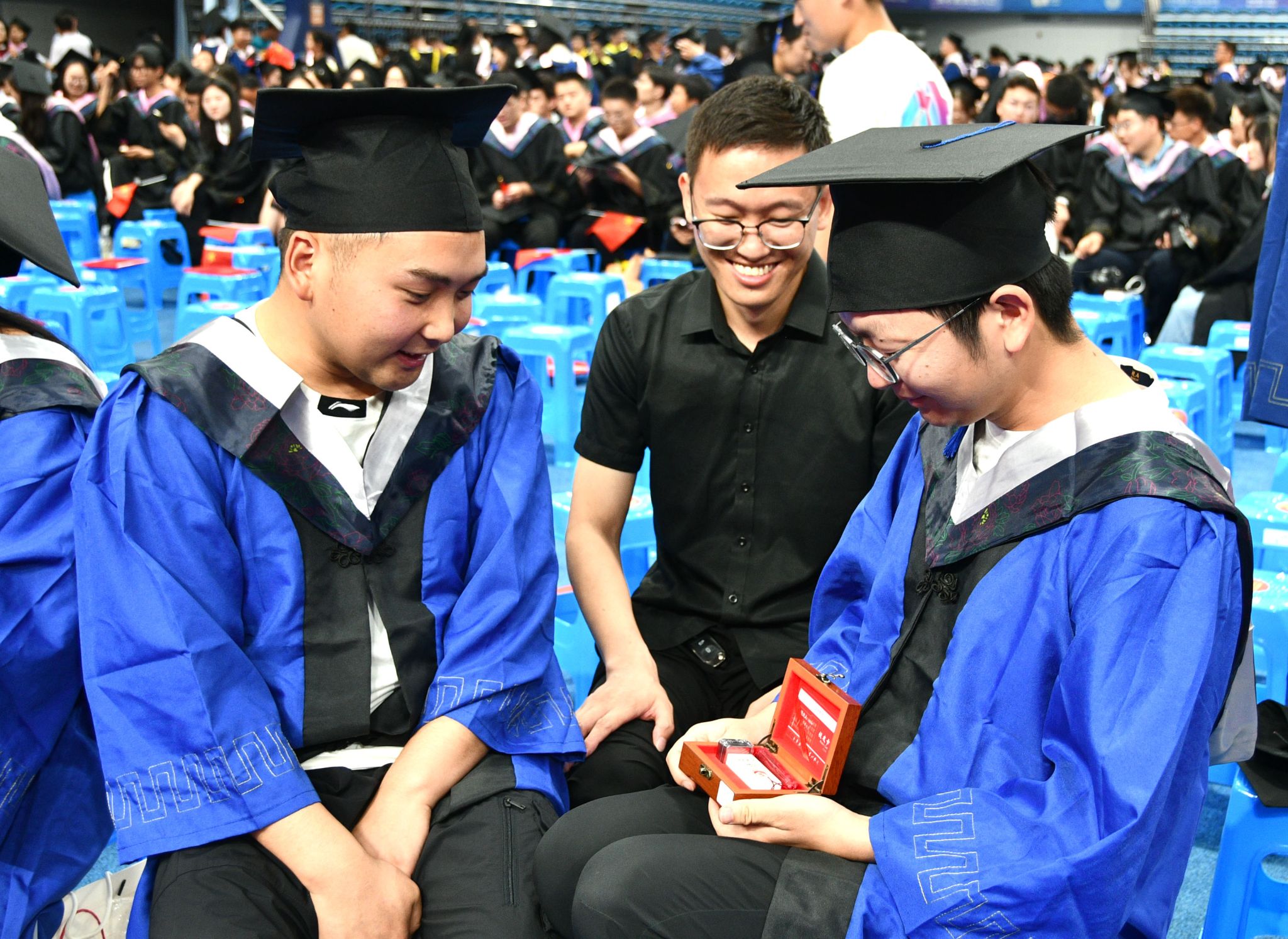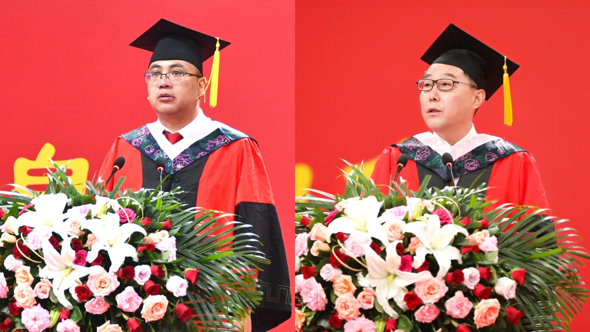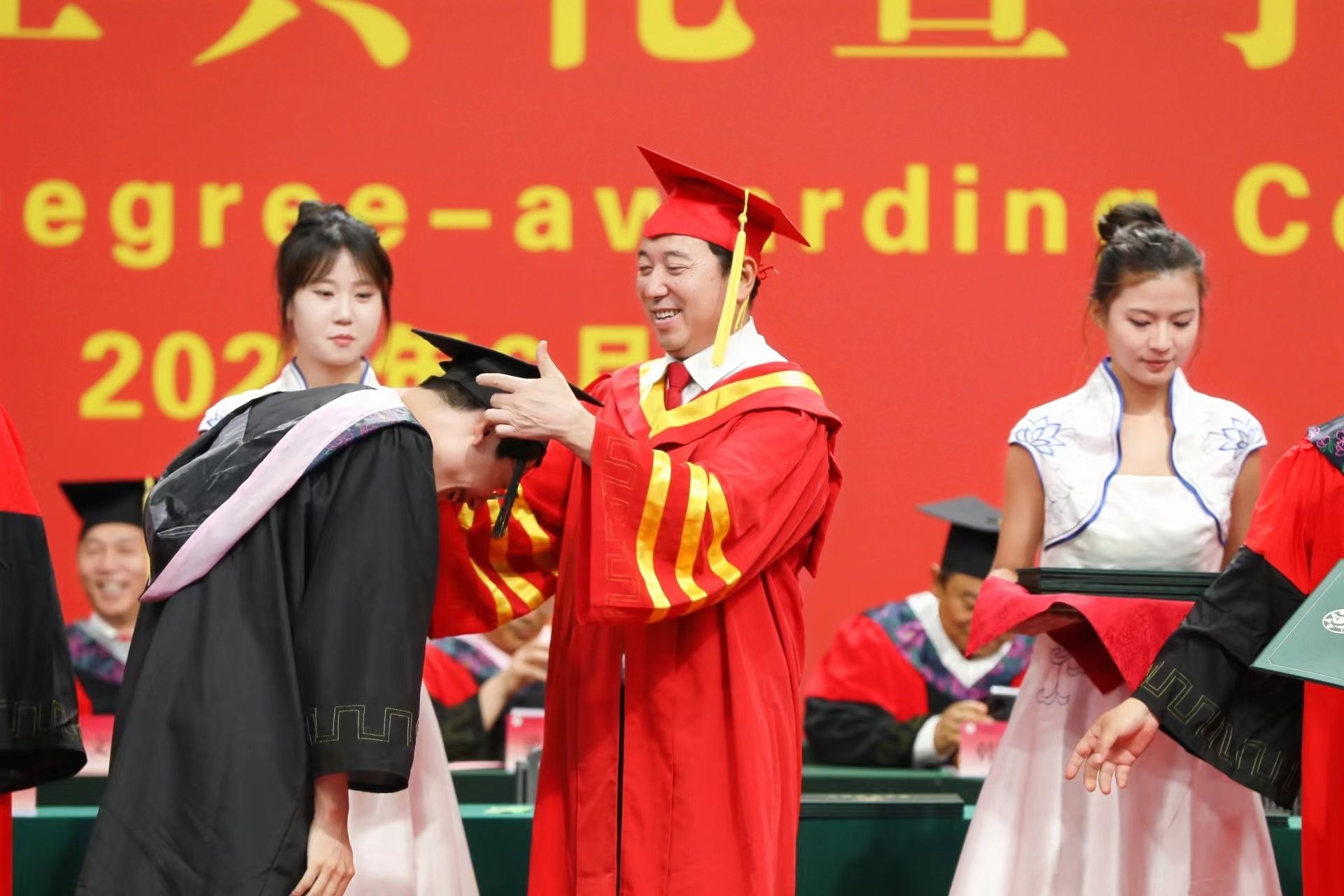 在近两个小时的时间里,张金锁书记、高子伟校长和校学位评定委员会委员们满怀深情,为1600余名毕业生代表一一拨穗、颁发毕业证书和学位证书。毕业生们则尽情拥抱着这个属于他们的仪式。