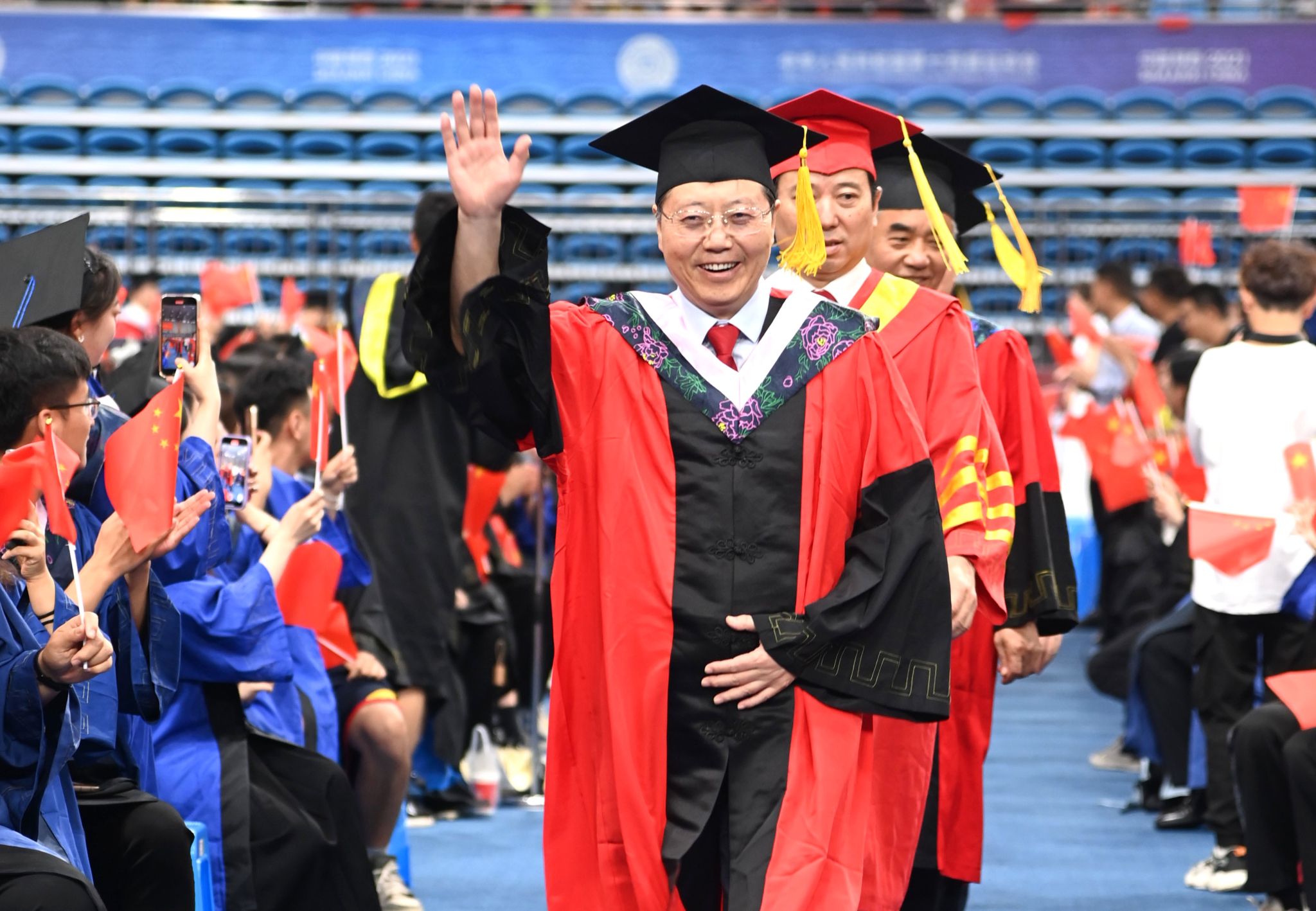 夏花绚烂,骊歌轻起。6月30日上午,米兰2023届学生毕业典礼暨学位授予仪式在新城校区体育中心举行。校党委书记张金锁,校长高子伟,校党委副书记、纪委书记苏醒仁,校党委副书记陈华,副校长杨伟宏、付峰、吕达、谭虎娃,校学位评定委员会全体委员,各学院、各有关部门负责人,以及2023届在校本科、硕士毕业生和毕业生家长共同见证了这一神圣而又庄严的时刻。毕业典礼全程进行现场图片直播,让身处各地的毕业生、老师、校友、家长,可以相聚云端、共同观礼,一起铭记这场盛大的青春告别仪式。