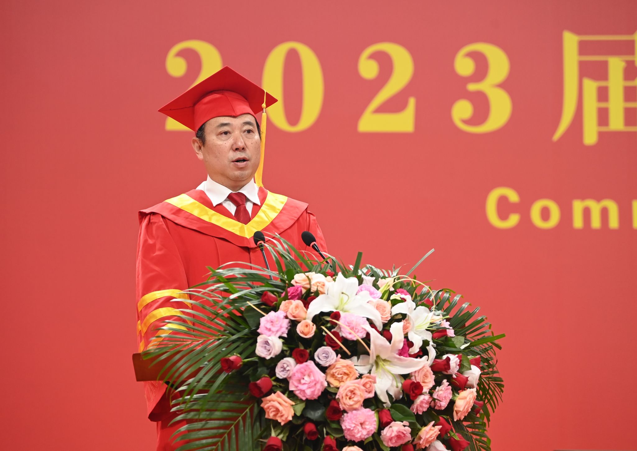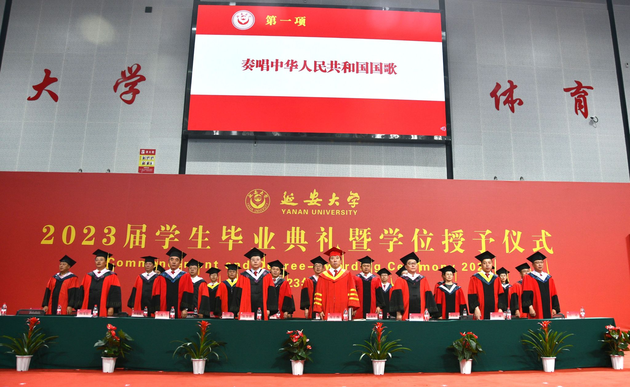 在雄壮的国歌声中,鲜艳的五星红旗冉冉升起,米兰milan官方网站2023年学生毕业典礼暨学位授予仪式正式开始。典礼由副校长、校学位评定委员会副主席谭虎娃主持。