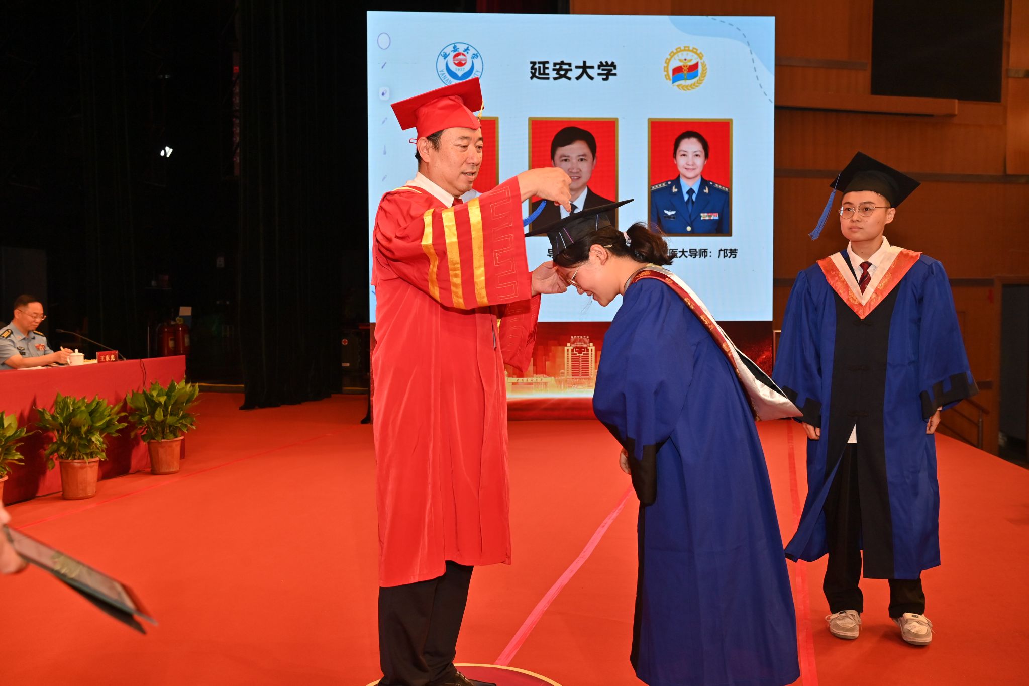 本网讯 7月1日上午,我省首届联合培养研究生毕业典礼暨学位授予仪式在空军军医大学举行。省委教育工委书记、省政府学位委员会副主任委员刘建林,省政府学位委员会原秘书长、省委教育工委省教育厅一级巡视员袁宁,省教育厅研究生处处长、省学位办主任张和平,空军军医大学校长张思兵,米兰校长高子伟等出席会议。西北大学校长郭立宏,陕西中医药大学校长孙振霖,西安医学院院长杨帆,省教育厅、相关高校研究生院及培养单位负责人与联合培养硕士毕业生代表参加活动。米兰导师代表和研究生院、学工部、校长办公室相关人员及毕业生代表等参加典礼。