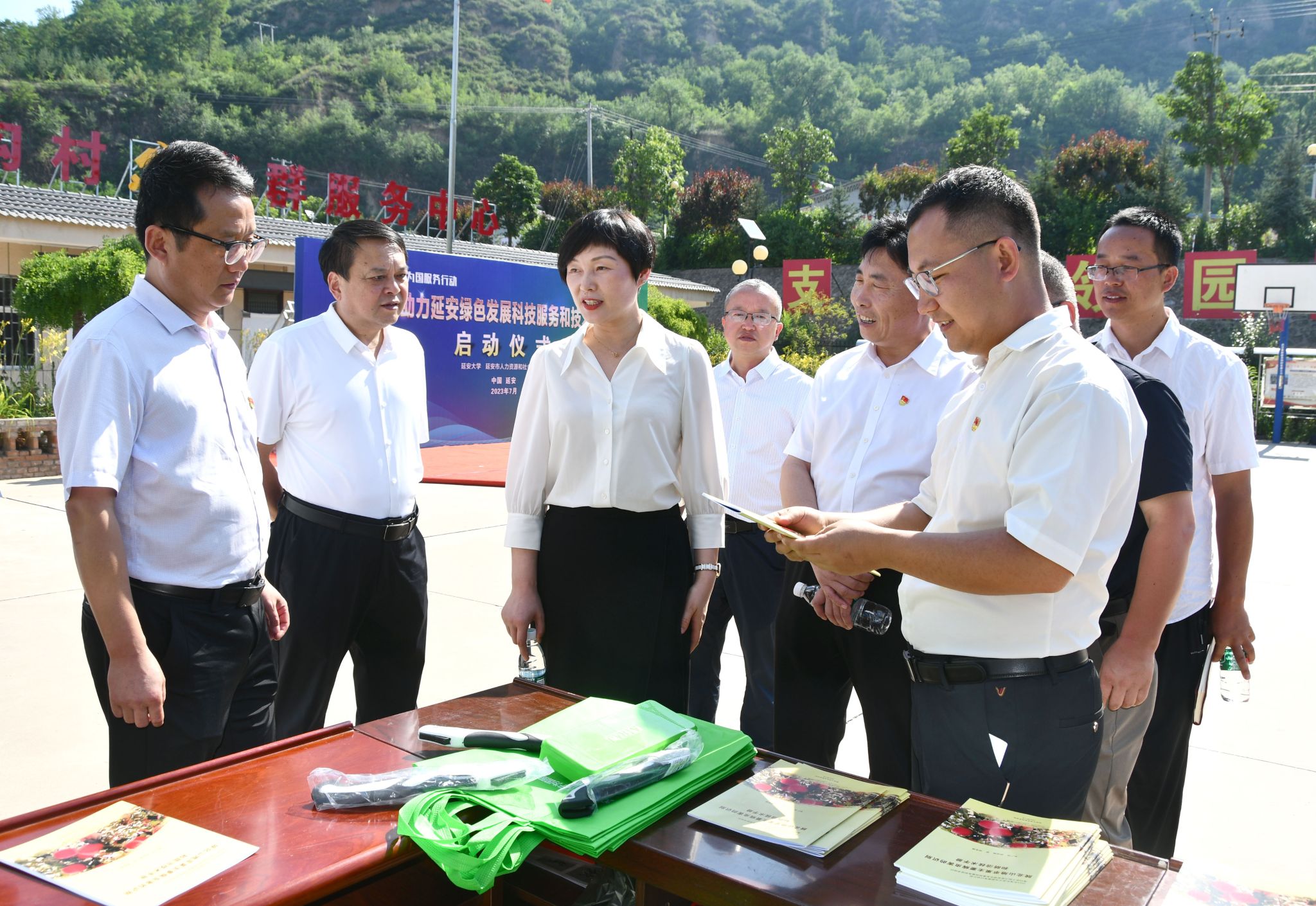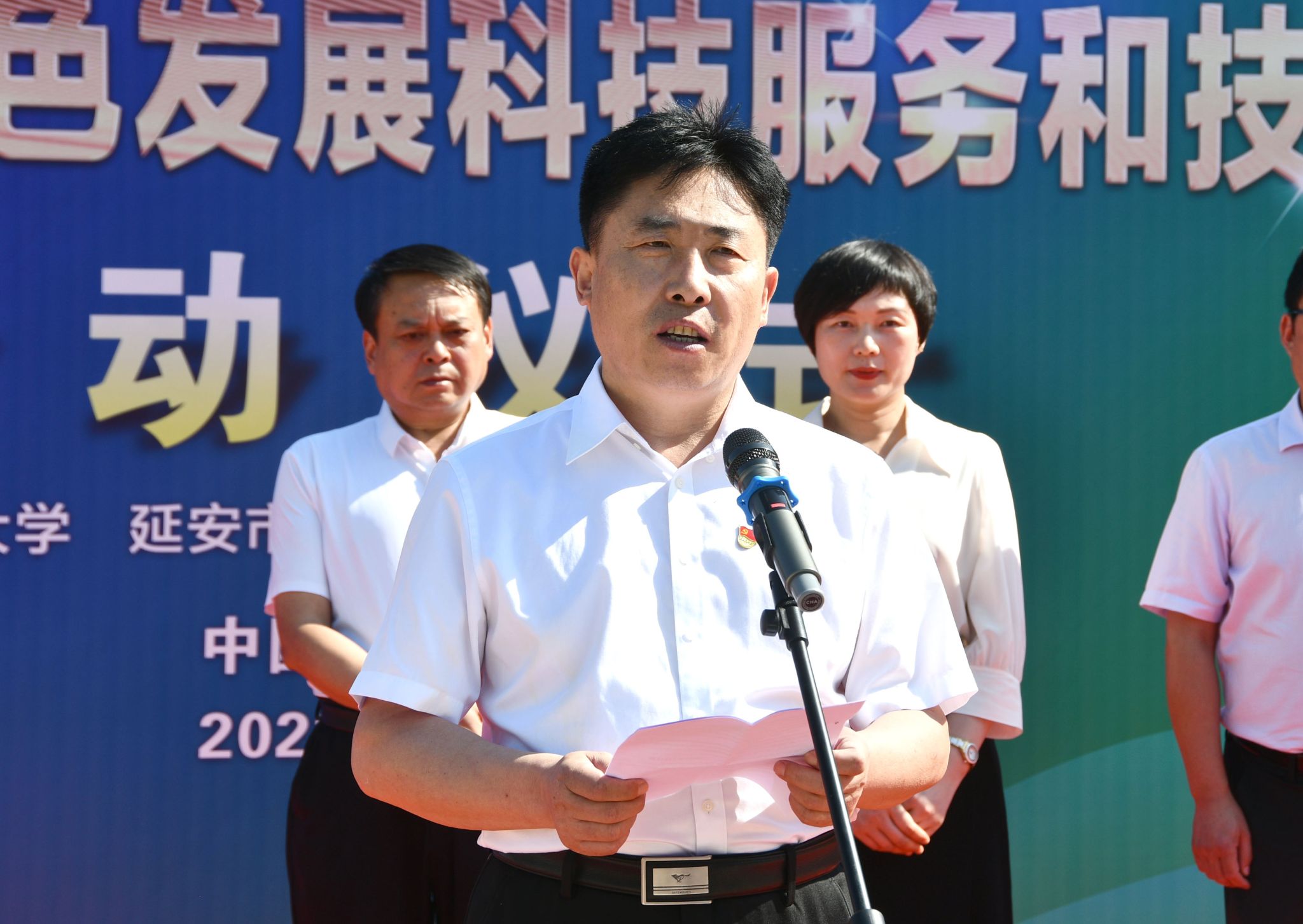 本网讯 7月18日上午,由中华人民共和国人力资源和社会保障部批准的重点资助项目,米兰milan官方网站承担的“海归赤子助力延安绿色发展科技服务和技术培训活动”启动仪式在安塞区高桥镇南沟村举行,延安市委组织部副部长、人社局党组书记、局长刘涛、陕西省人社厅三级调研员董艳,延安市人社局副局长张华,米兰milan官方网站人事处处长、高层次人才办主任雷伟、人事处副处长姬小龙,科研处副处长刘宏宇,生命科学学院党委书记白亚军、院长张向前,安塞区人社局局长周赟等出席仪式,项目组全体成员和当地群众等60余人参加启动仪式,启动仪式由人事处副处长高岩主持。