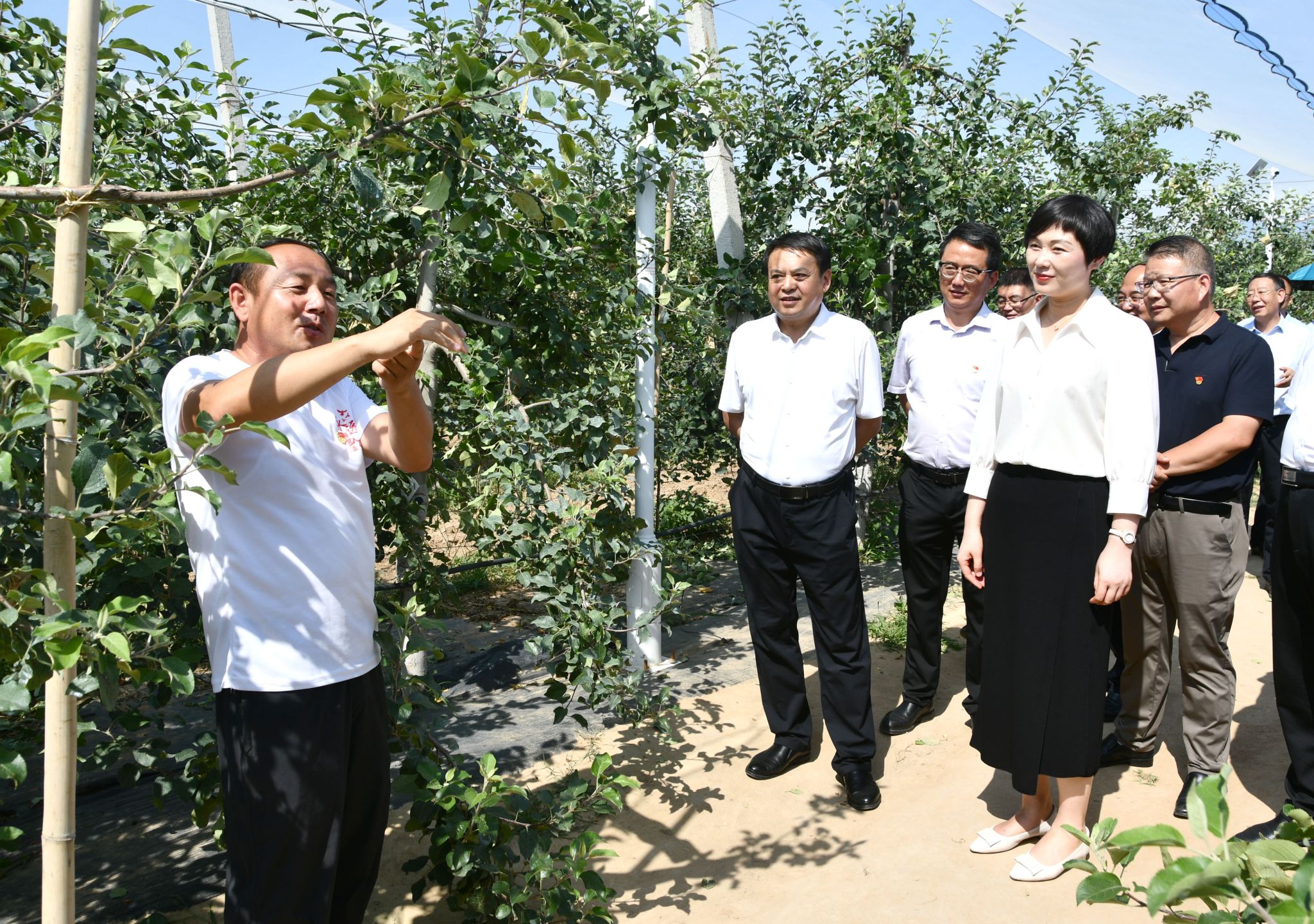 仪式结束后,相关领导和专家考察了南沟村海归赤子助力延安绿色发展研究和技术服务基地,项目组成员生命科学学院副教授赵继荣和副教授马吉福分别介绍了近年来米兰在科技服务延安山地苹果绿色产业、区域生态治理和土壤改良等方面的工作内容和成效。