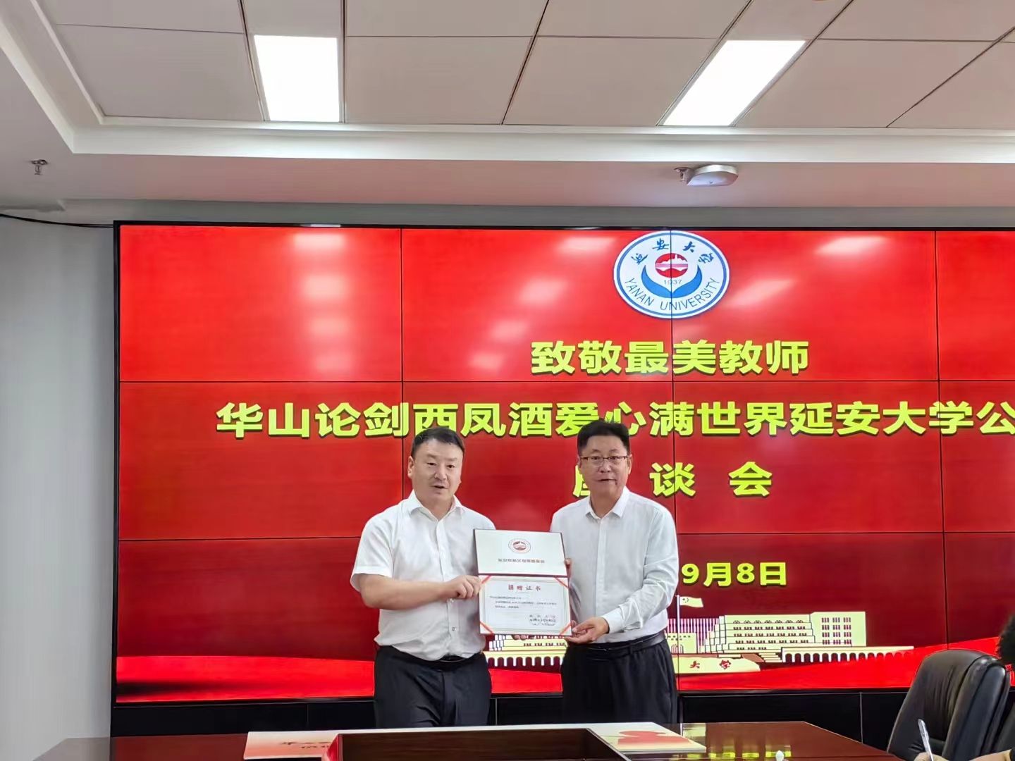 吕达表示,华山论剑西凤酒品牌积极承担社会责任、重视教育事业,极大地鼓舞了学校坚守教育初心,办好延大的信心和决心。以及对企业的爱心奉献表示了感谢,并代表学校颁发了捐赠书。