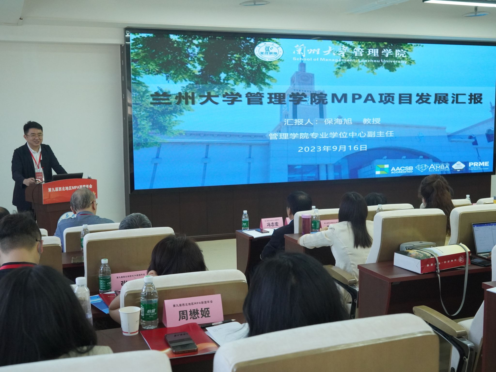 兰州大学管理学院专业学位中心副主任保海旭教授结合兰州大学在MPA教学及管理中的做法与经验,以“兰州大学管理学院MPA项目发展汇报”为题,在课程教学、实践案例、学位论文、培养质量保障体系架构等方面和与会代表进行了经验分享。