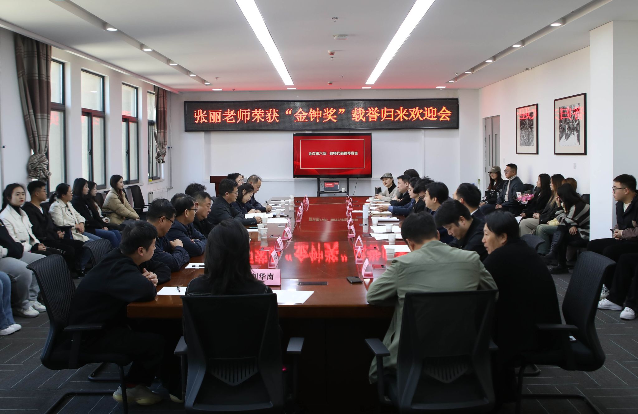 本网讯 10月31日下午,米兰在音乐楼3楼会议室举行张丽老师荣获第十四届中国音乐“金钟奖”载誉归来欢迎会,延安市文联党组书记、主席孙文芳,延安市音乐家协会主席李海英,米兰副校长杨伟宏、付峰、吕达,宣传部、人事处、教务处、科研处等有关部门负责人,第十四届中国音乐“金钟奖”获得者、鲁艺学院张丽老师,鲁艺学院领导班子成员以及师生代表参加了欢迎会。会议由鲁迅艺术学院党委书记董振文主持。