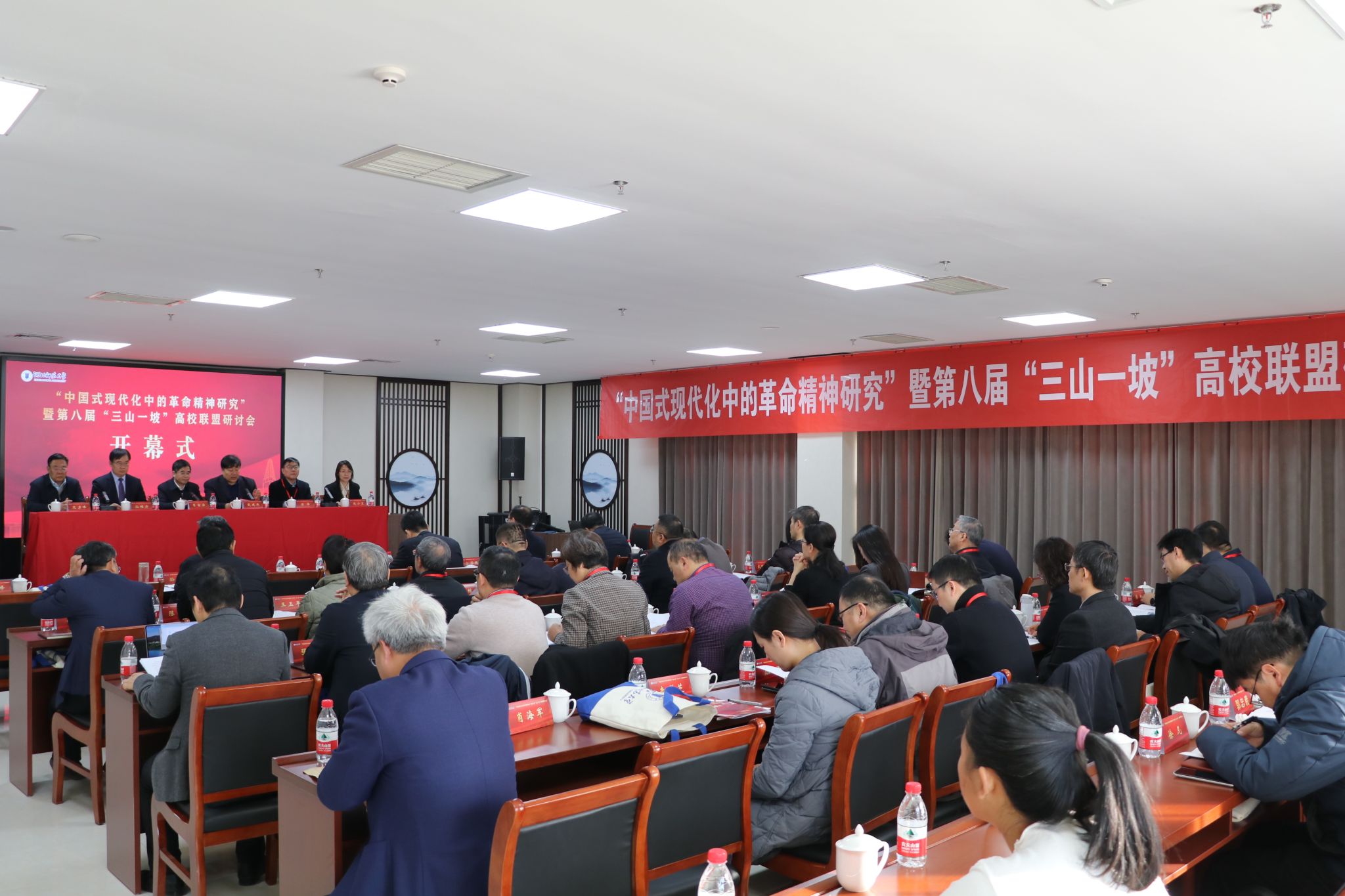 陈华在开幕式致辞中指出,井冈山精神、延安精神、沂蒙山精神、西柏坡精神等革命精神是党领导人民在长期革命实践中、在马克思主义基本原理指导下,对中华优秀传统文化进行创造性转化和创新性发展的伟大成果,是中国共产党人精神谱系的重要组成部分和探索中国式现代化的重要精神力量,体现着中国式现代化的精神底蕴,凸显着中国式现代化的精神特质。继承和弘扬革命精神,落实立德树人根本任务,推进中国式现代化,是“三山一坡”联盟高校对党的历史负责、对红色校史负责、对红色基因负责、对人民期盼负责的光荣使命,也是每一位教育工作者、理论工作者心怀“国之大者”义不容辞的责任。他希望,联盟高校广大教育工作者要聚焦党和国家事业发展需要、破解时代问题需要、人民追求精神的需要和革命精神传承发展的需要,进一步总结和运用好党的百年奋斗历史经验,凝炼和深化好革命精神的时代价值,形成一批紧扣时代需求、破解发展难题的高质量学理性研究成果,回应好时代课题,让革命精神散发出新的时代光芒。