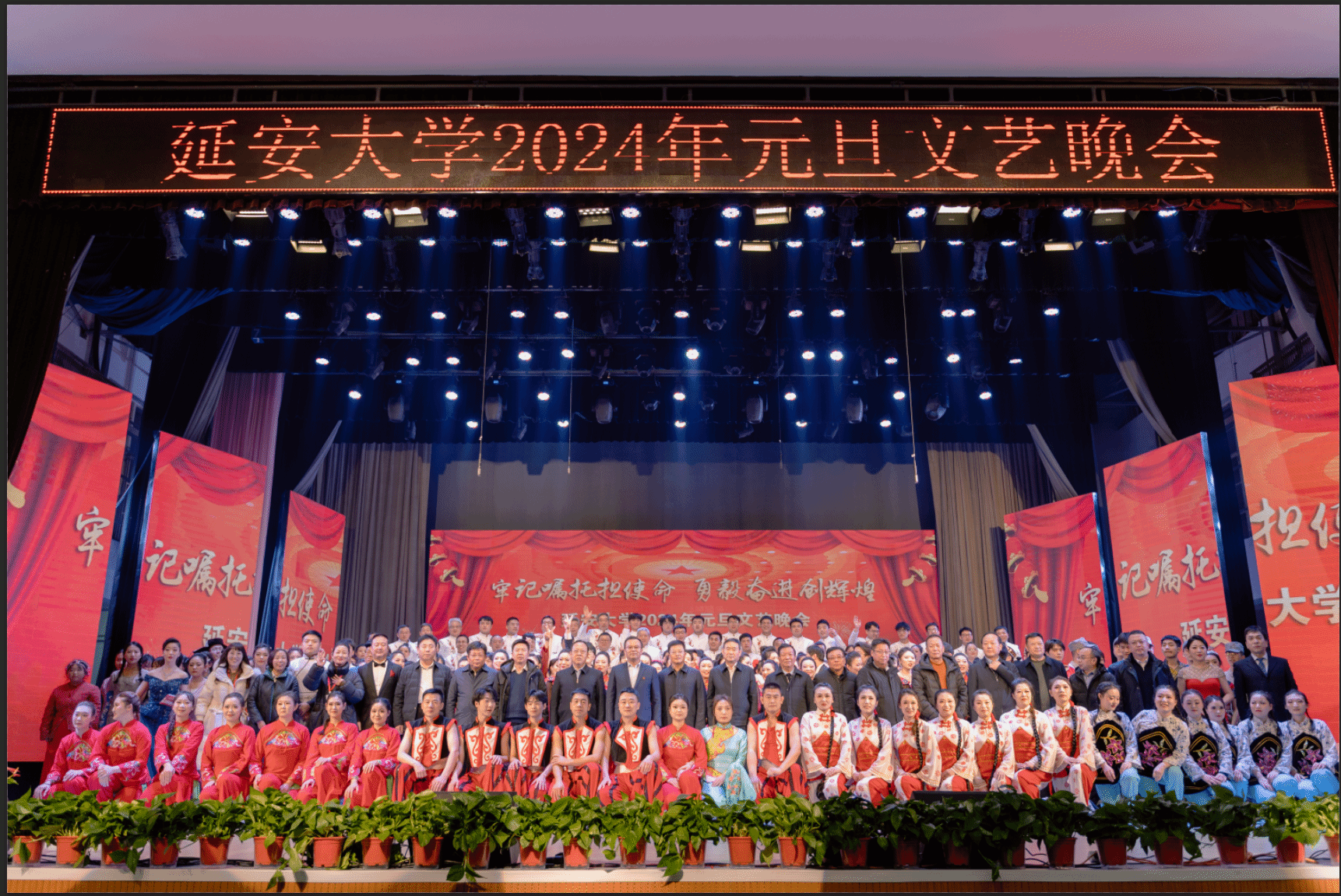 校党委副书记、校长奚家米,校党委副书记杨伟宏,校党委副书记、纪委书记、监察专员王占金,副校长吕达,延安市人大常委会副主任牛永红,延安能源集团党委副书记陈国强,延安翌园工贸有限公司董事长刘军,延安威欧工贸有限公司董事长张永军,延安旭坤地产董事长张维斌等嘉宾,以及学校各部门、各学院负责人与全校师生欢聚一堂,共同观看演出。